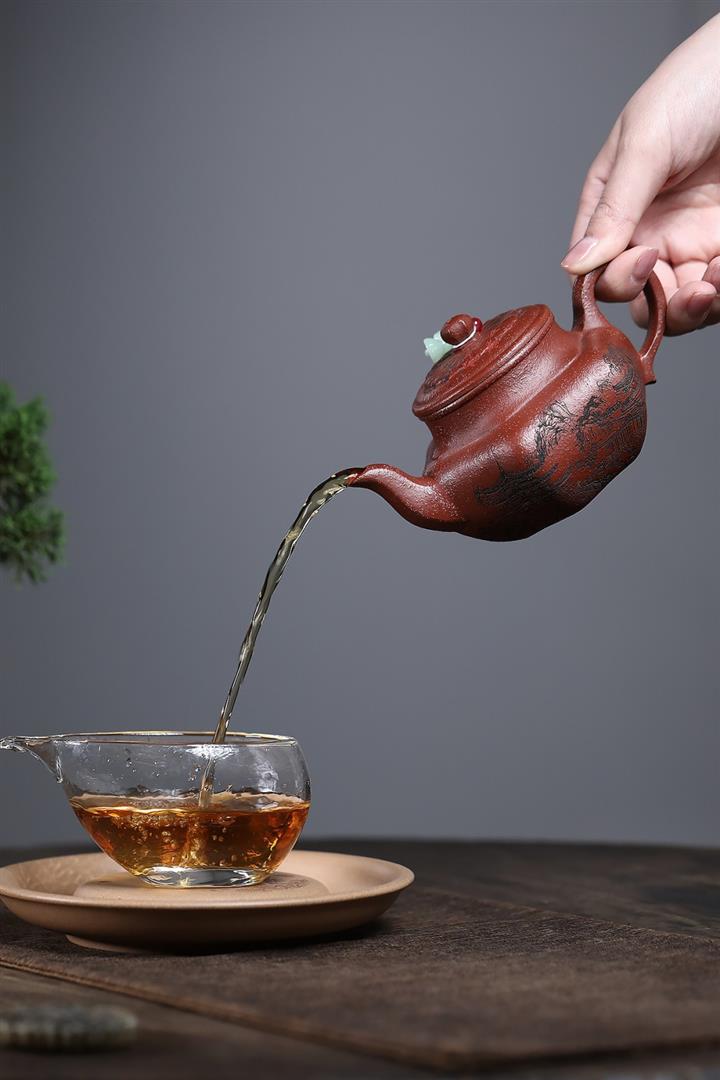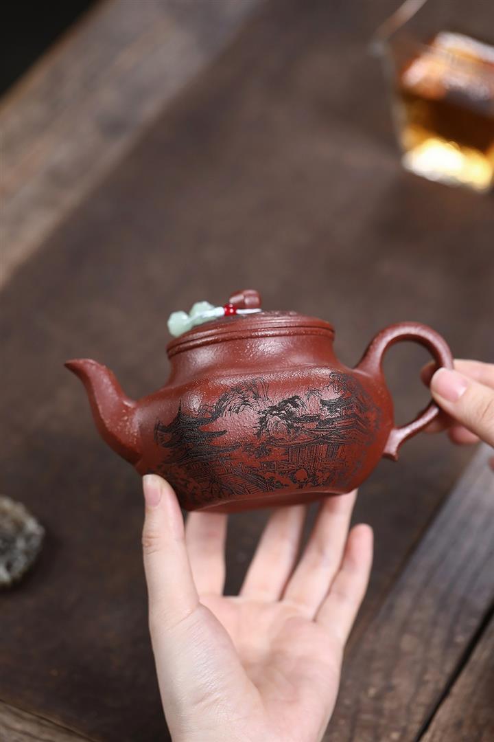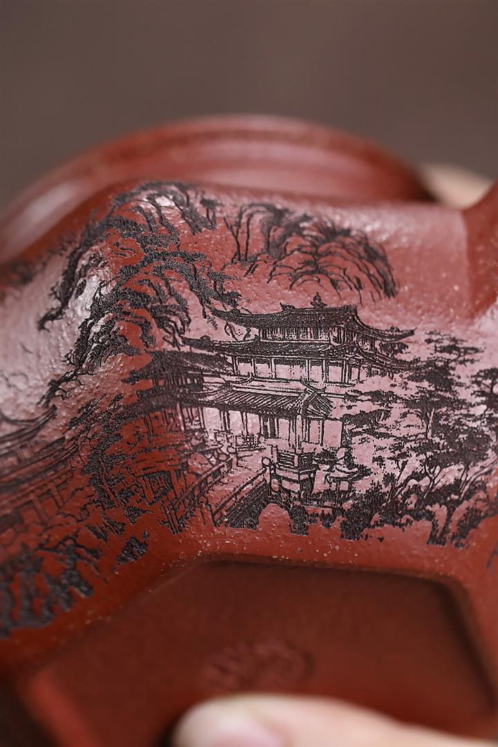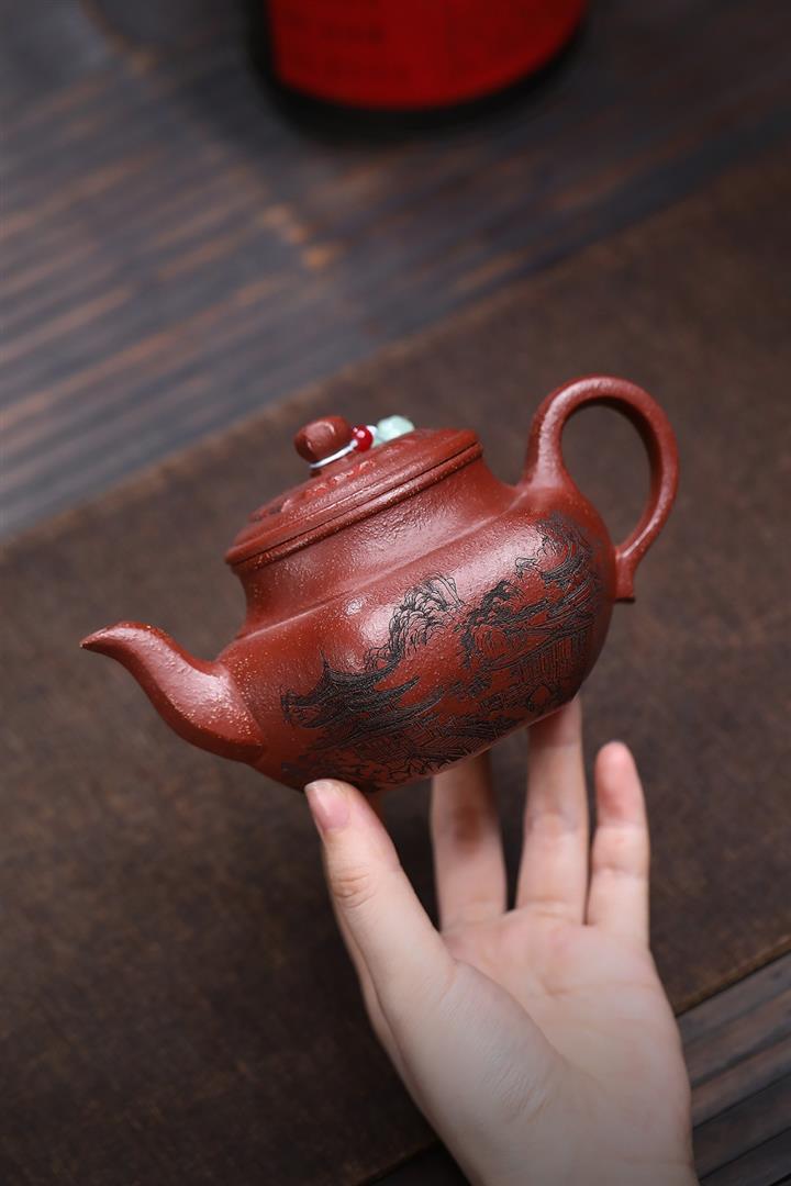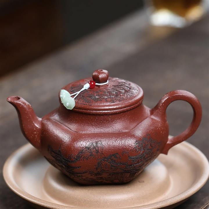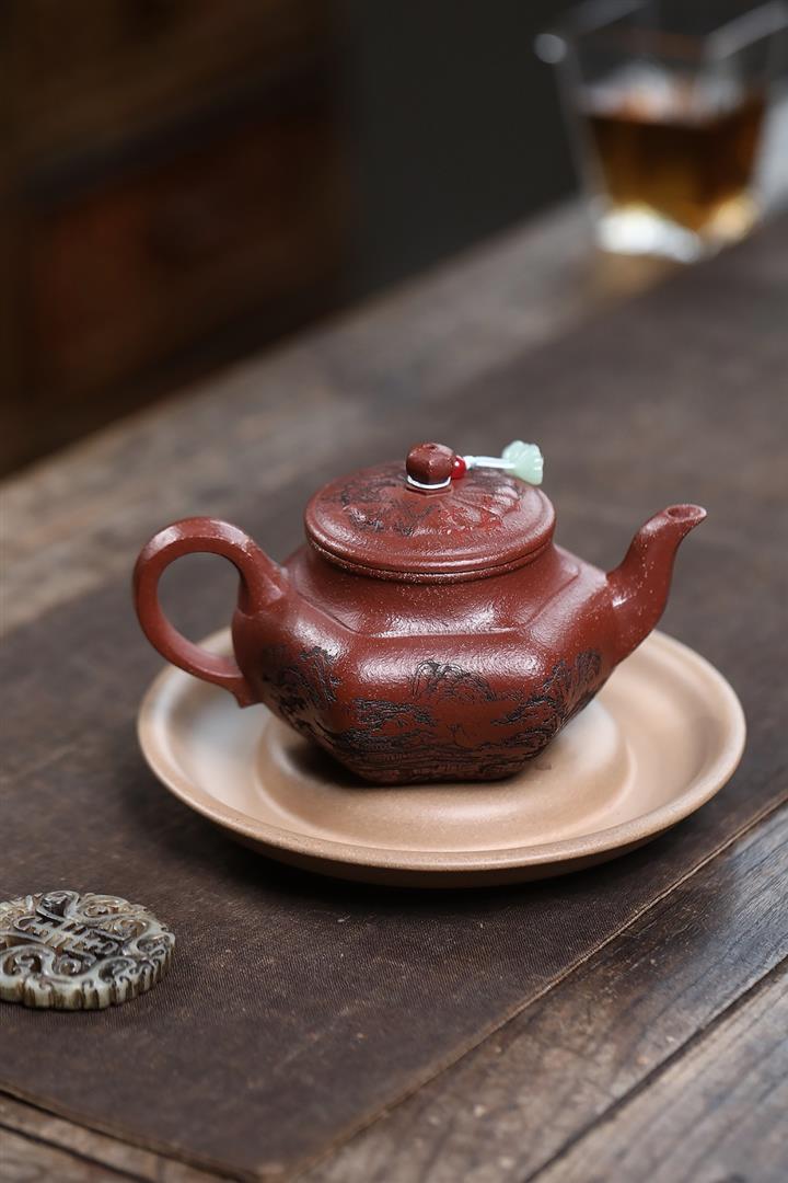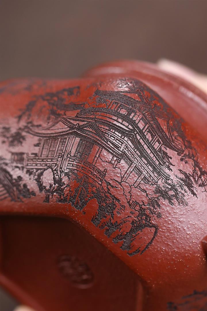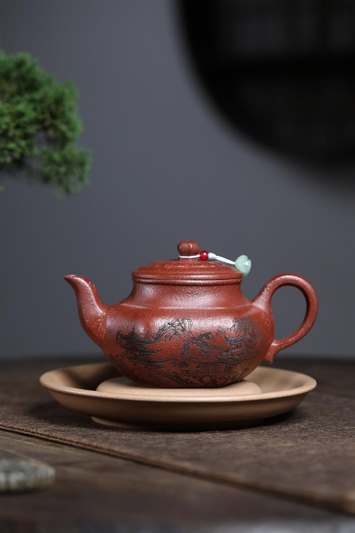 原礦紅降坡滿刻松鼠漢瓦茶壺POT7163