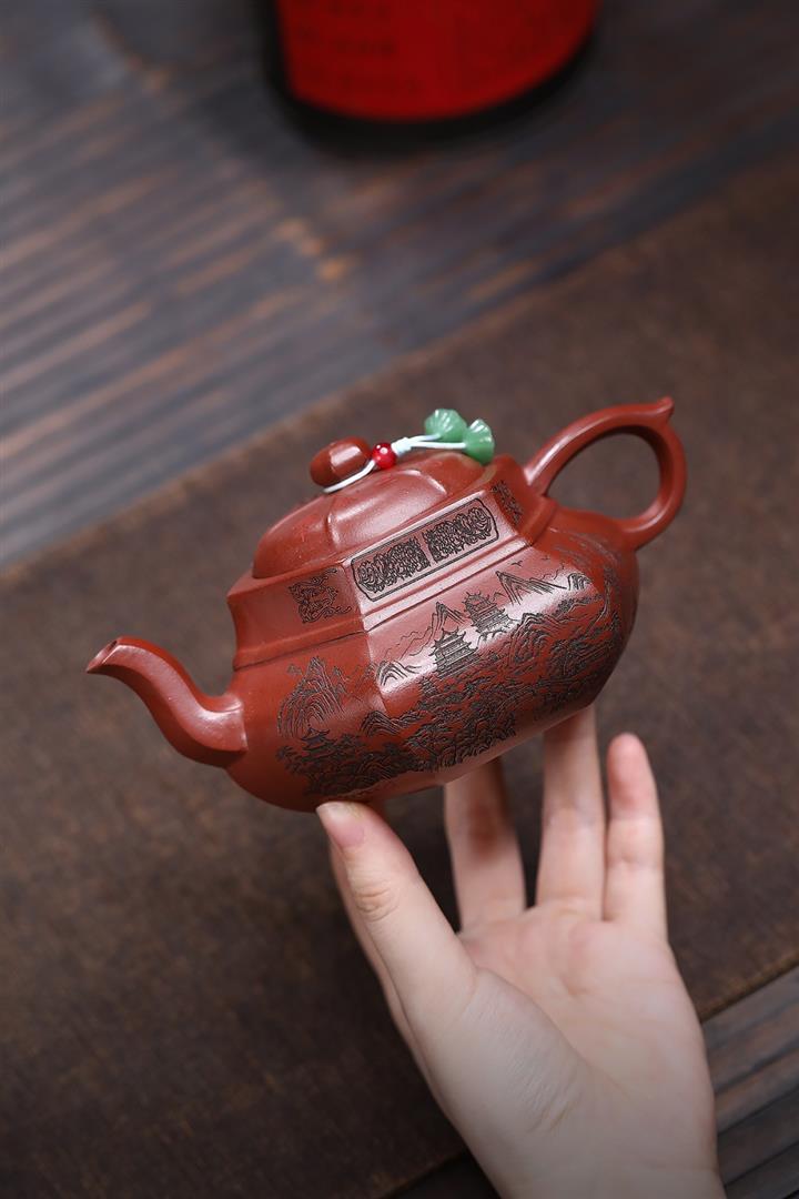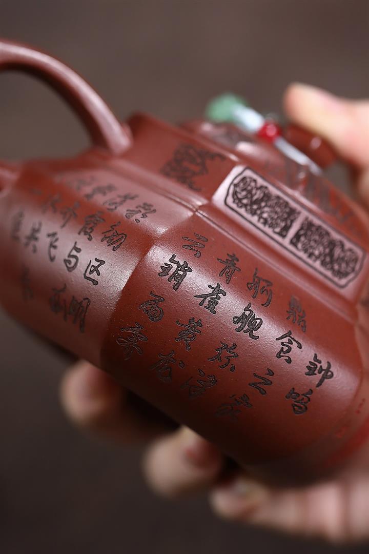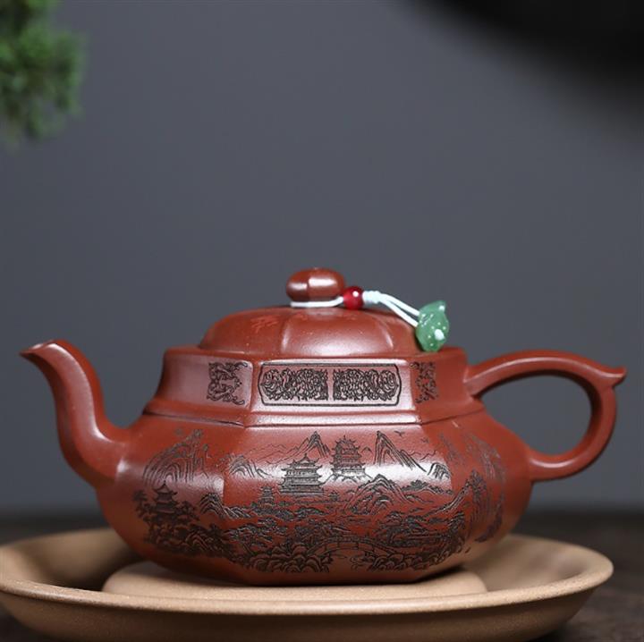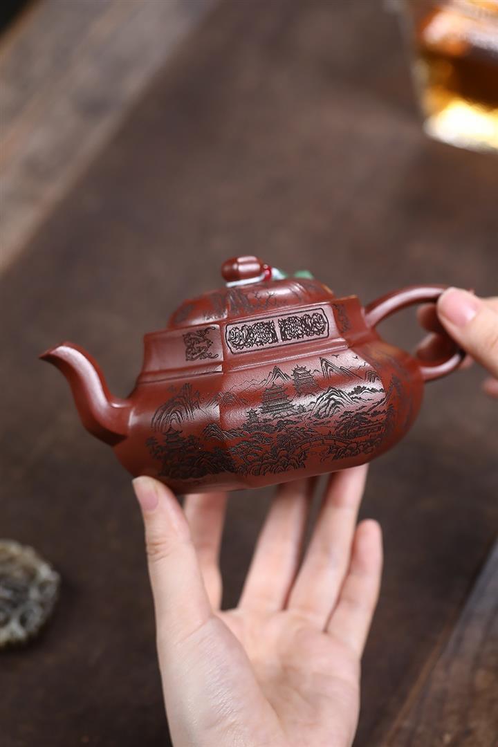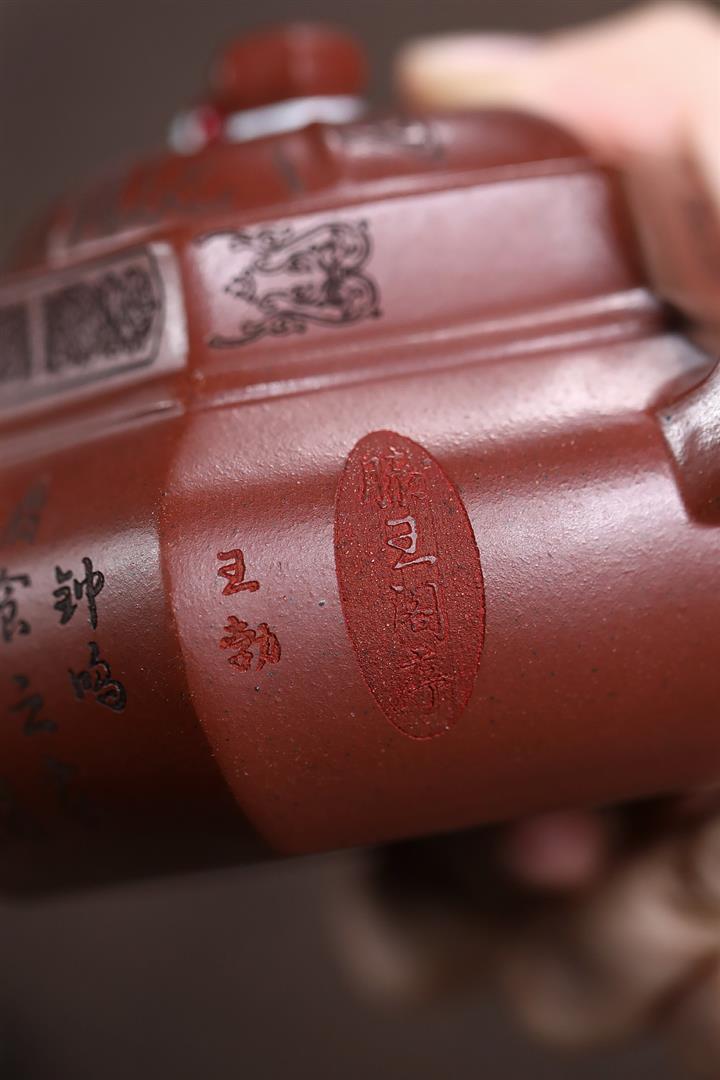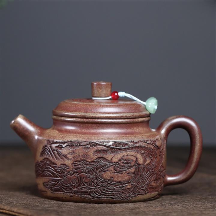 原礦紅降坡滿刻松鼠漢瓦茶壺POT7163