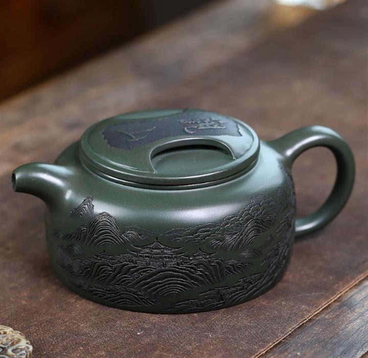 原礦墨綠泥山水牛蓋茶壺POT7165
