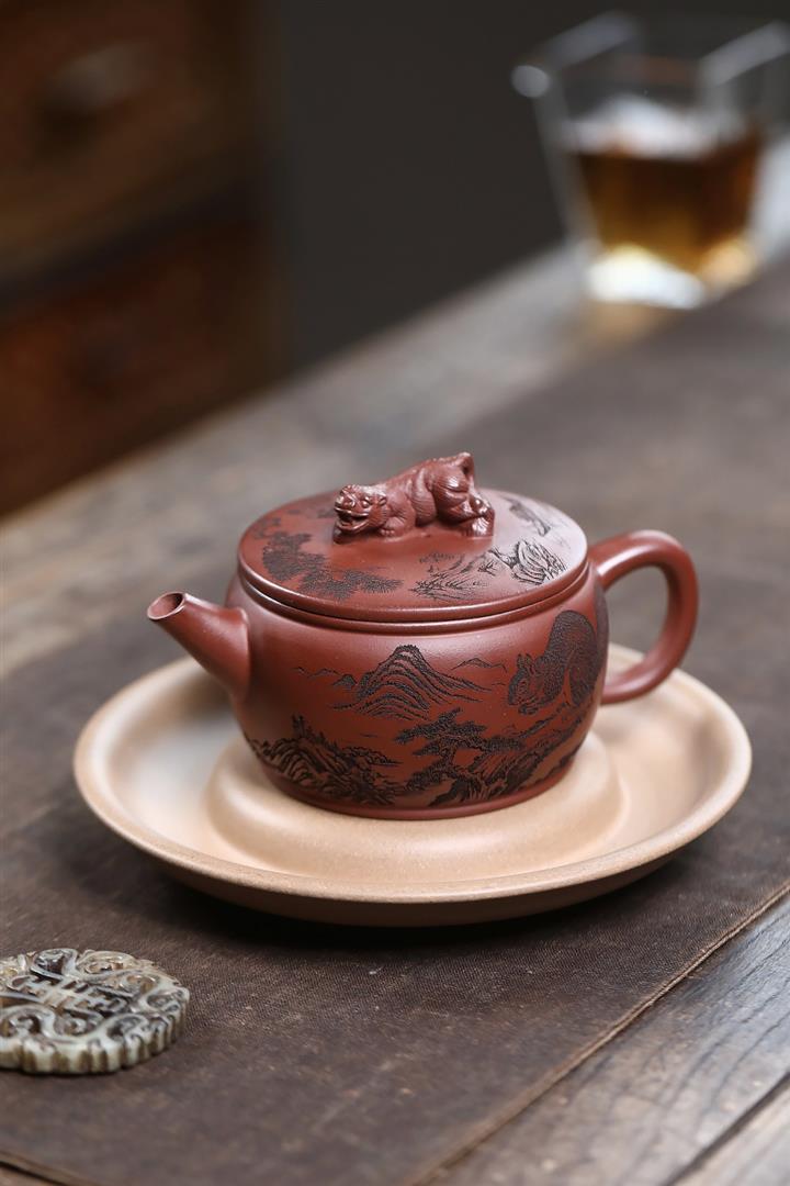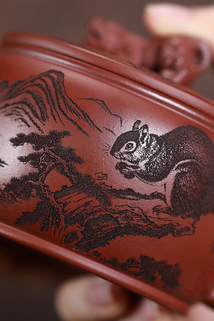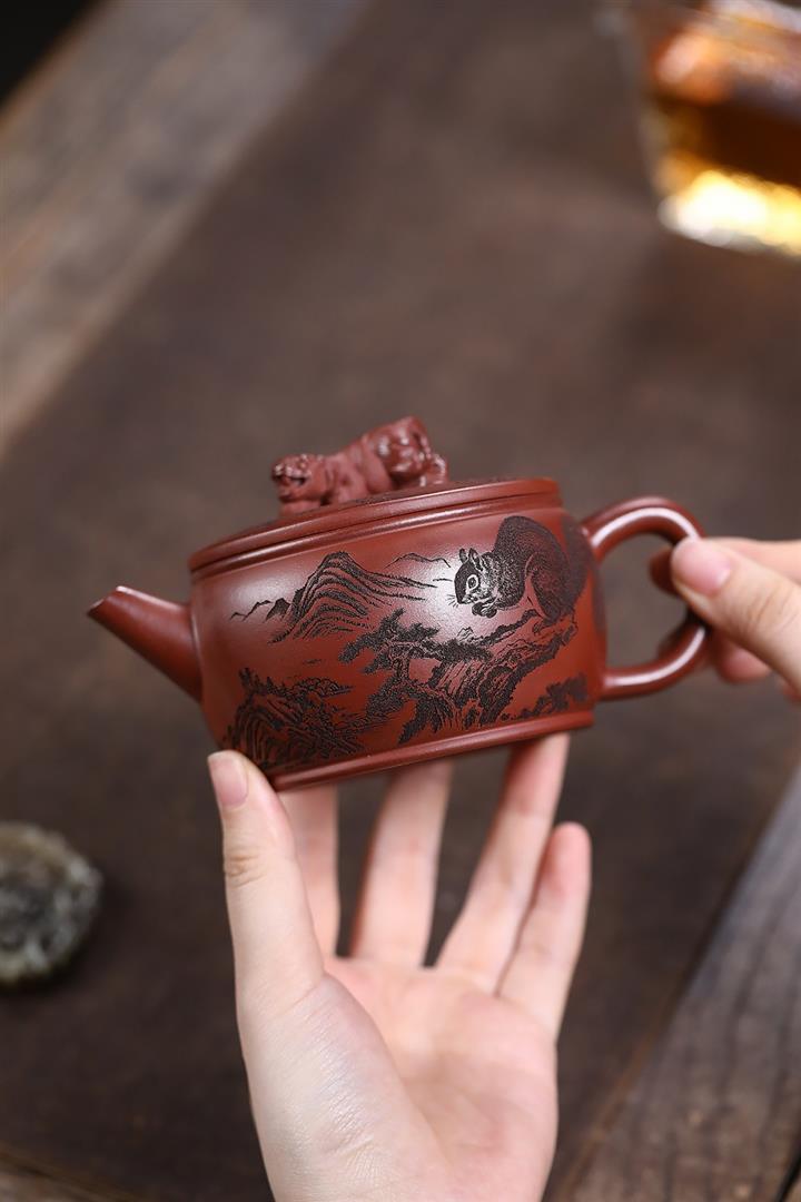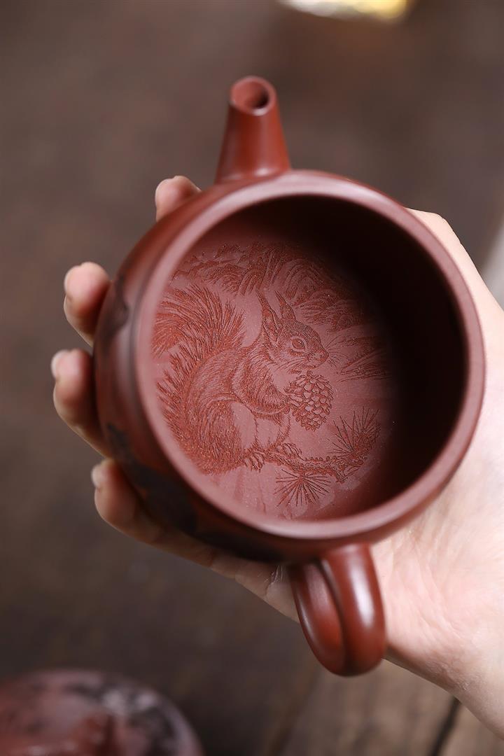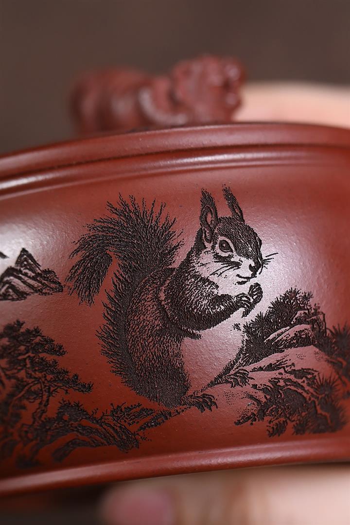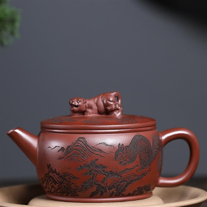 原礦紅降坡滿刻松鼠漢瓦茶壺POT7163