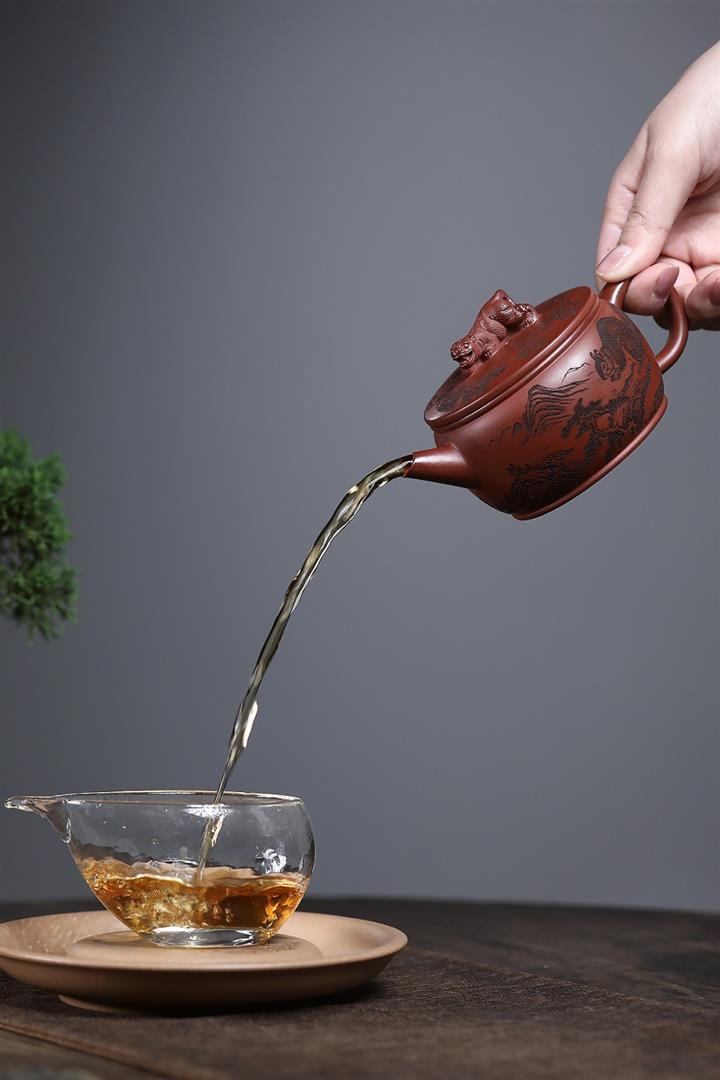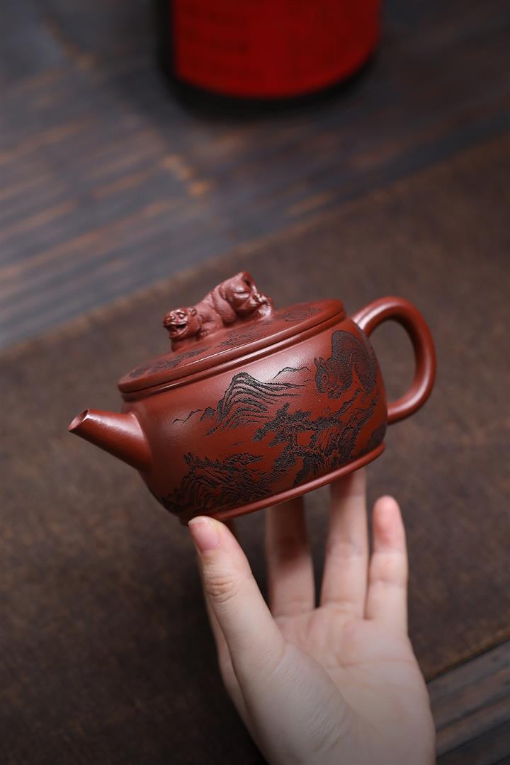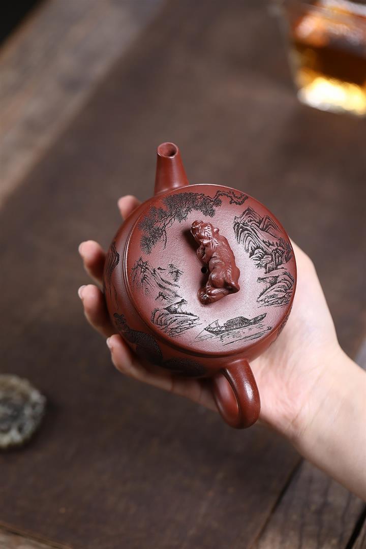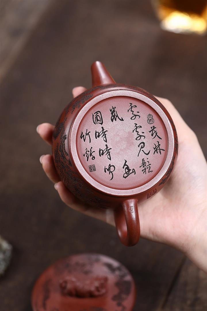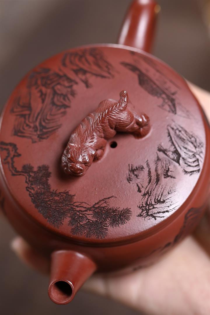 原礦紅降坡滿刻松鼠漢瓦茶壺POT7163