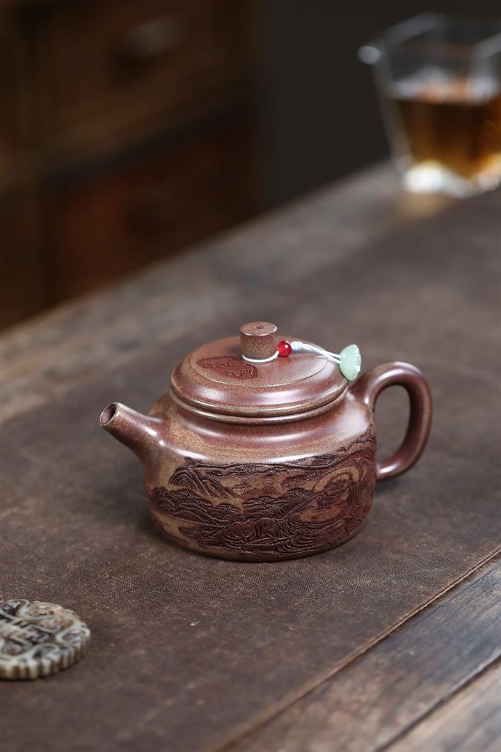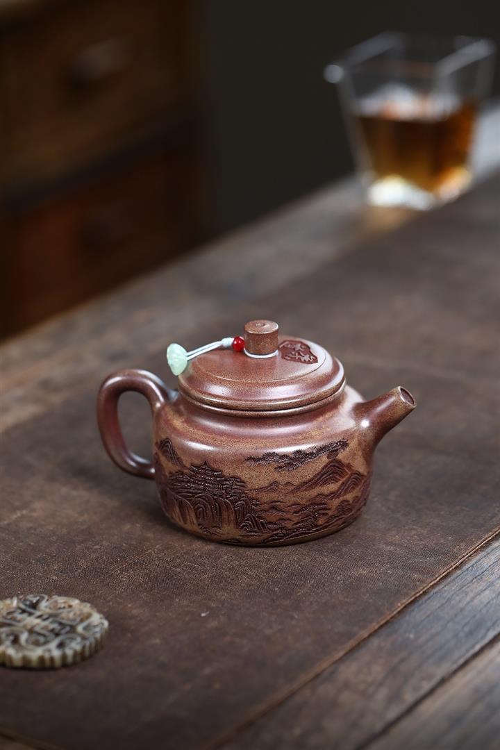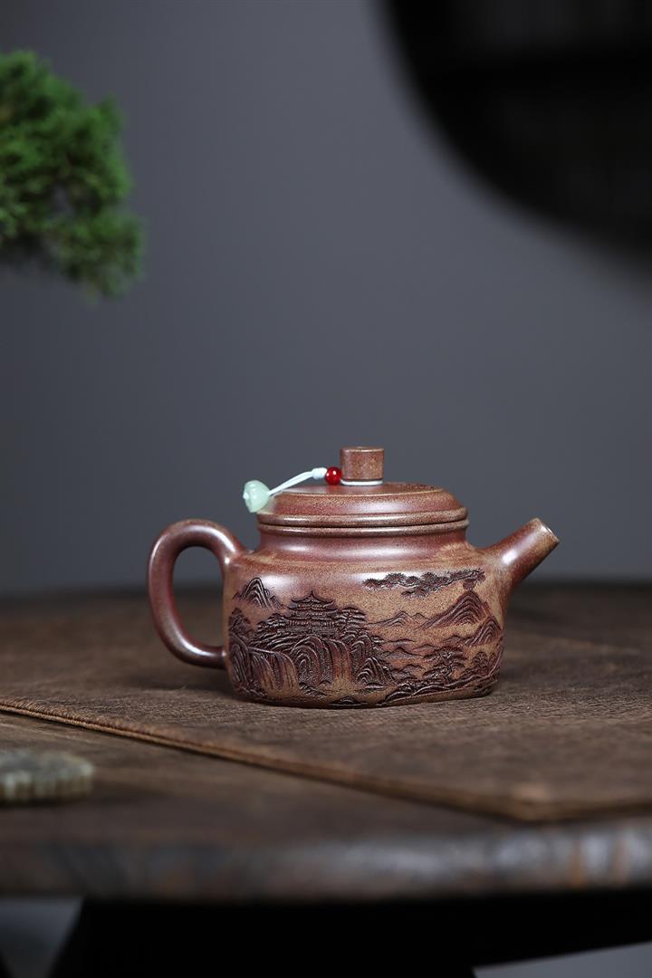 原礦高溫火焰燒四方觀山茶壺POT7176
