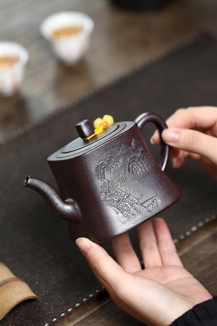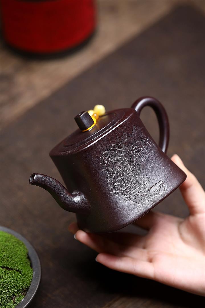 原礦高溫火焰燒四方觀山茶壺POT7176