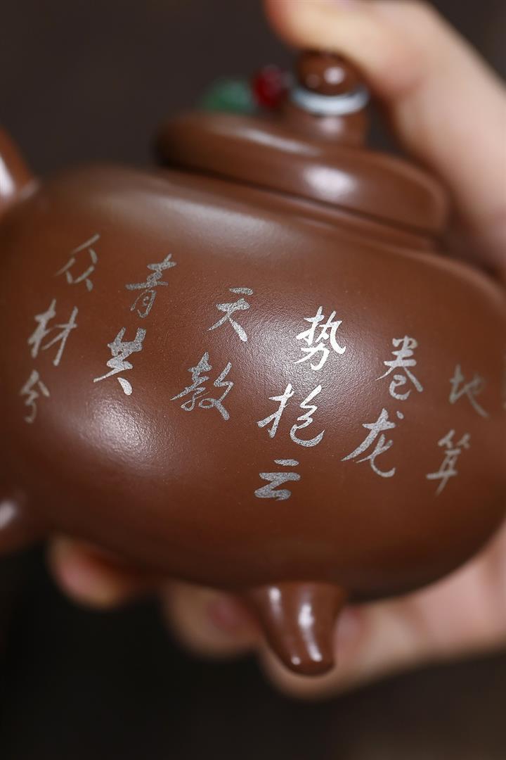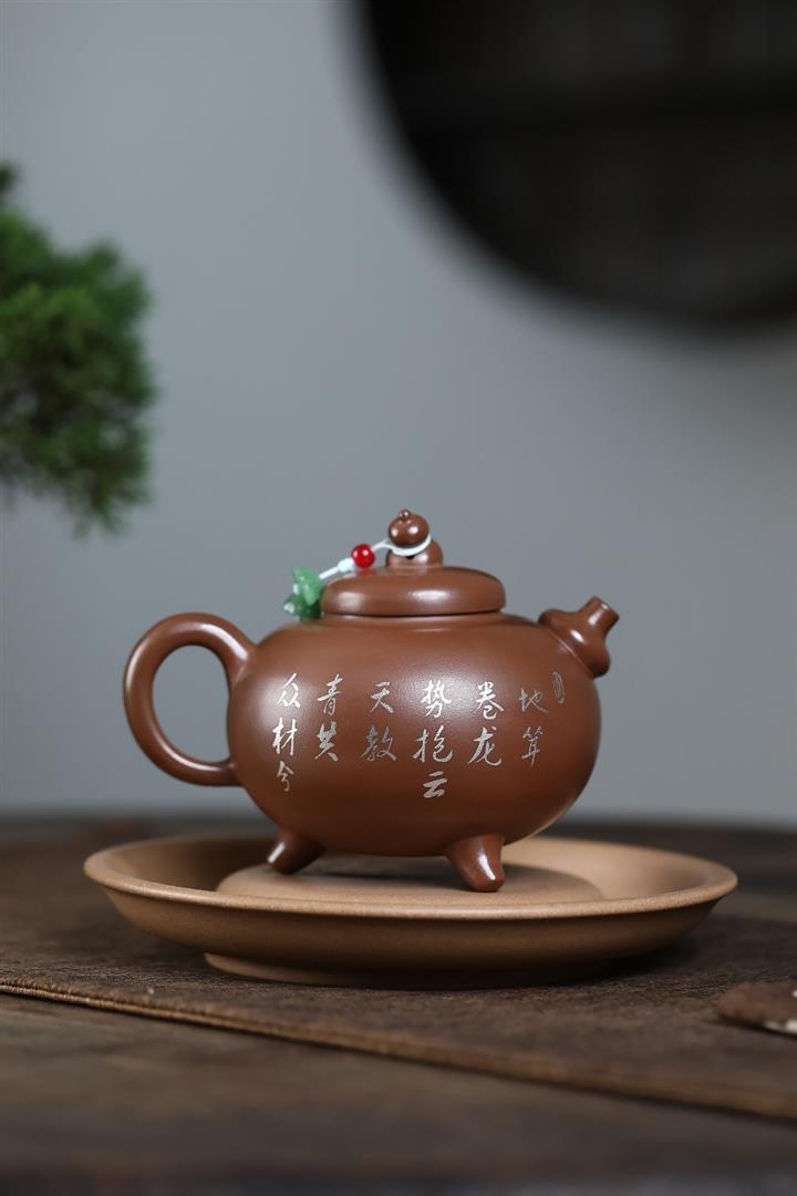 原礦赤金朱泥描金大漢瓦茶壺POT7180