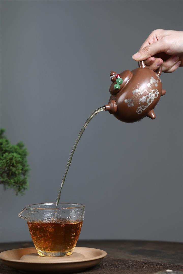 紫砂使用越久,壺身色澤越發光亮照人,氣韻溫雅。紫砂壺長久使用器身會因撫摸擦拭,變得越發溫潤光澤!