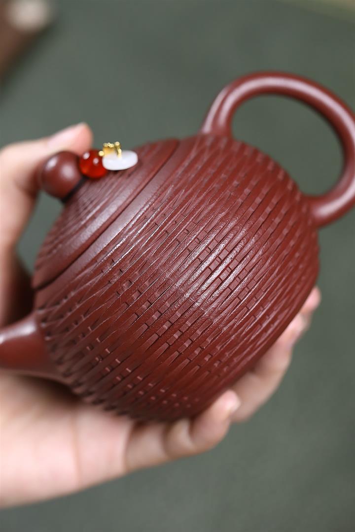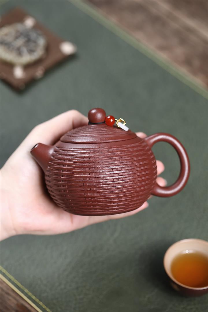 原礦龍血砂竹編西施泡茶壺POT7187