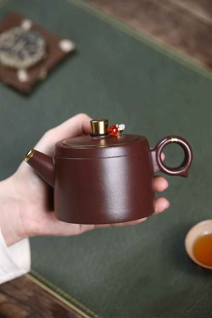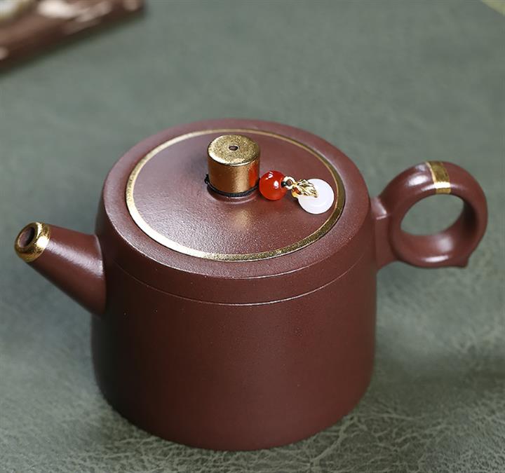 原礦老紫泥鑲金井欄茶壺POT7188