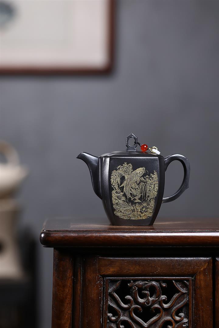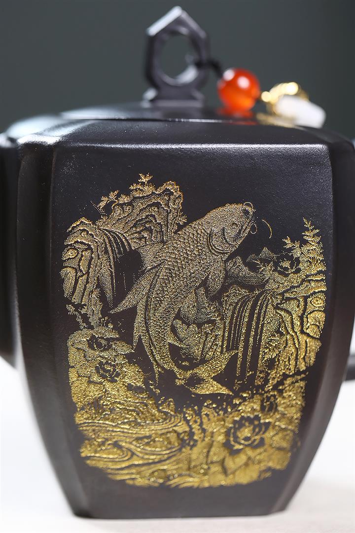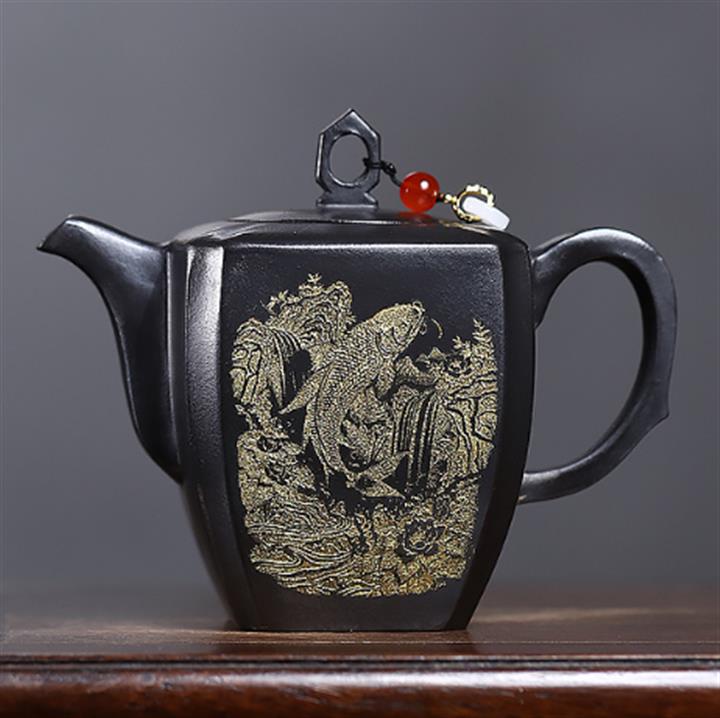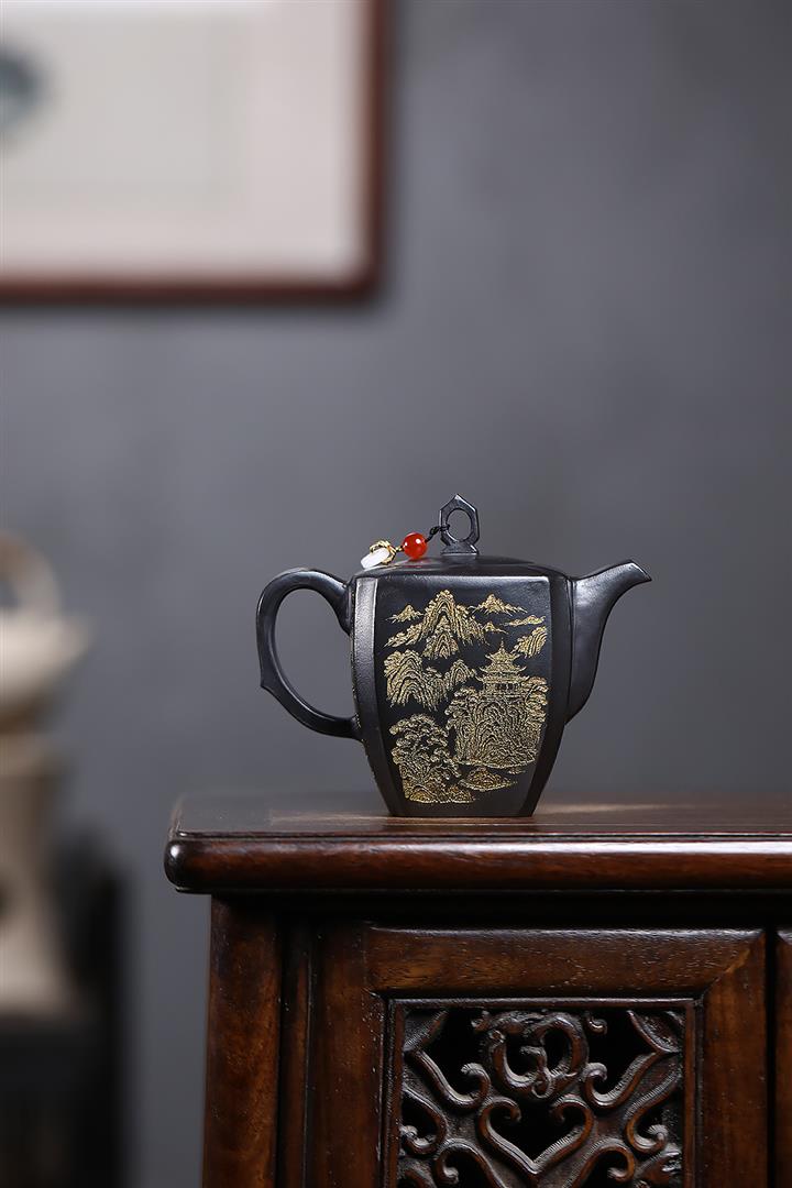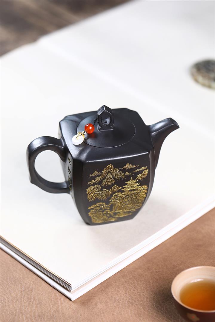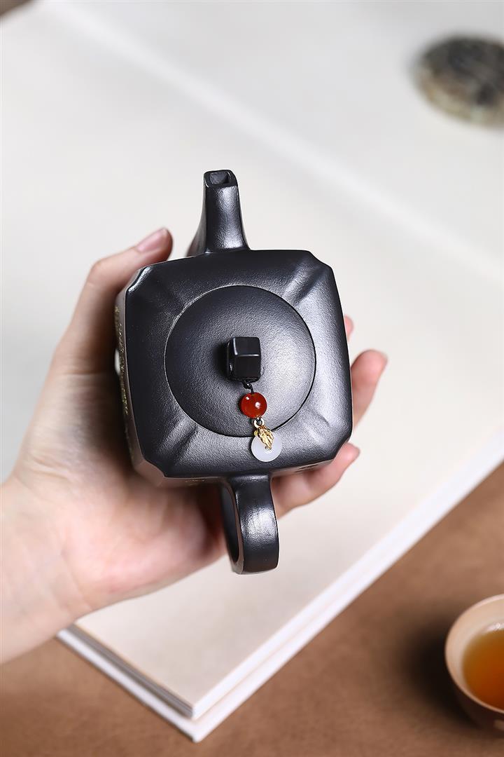 原礦玄鐵石黃四方抽角茶壺POT7194