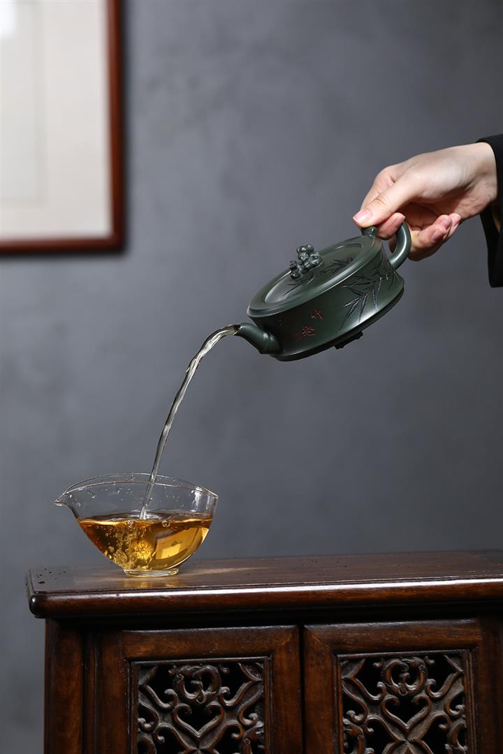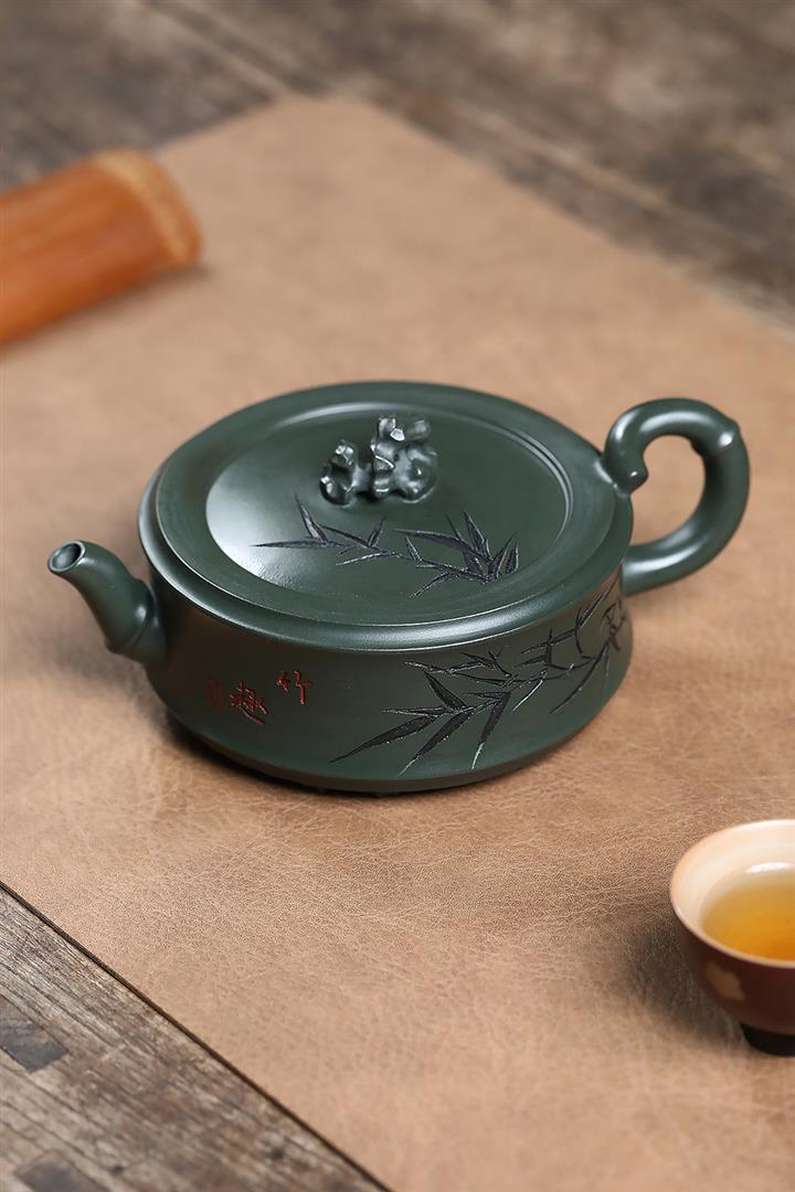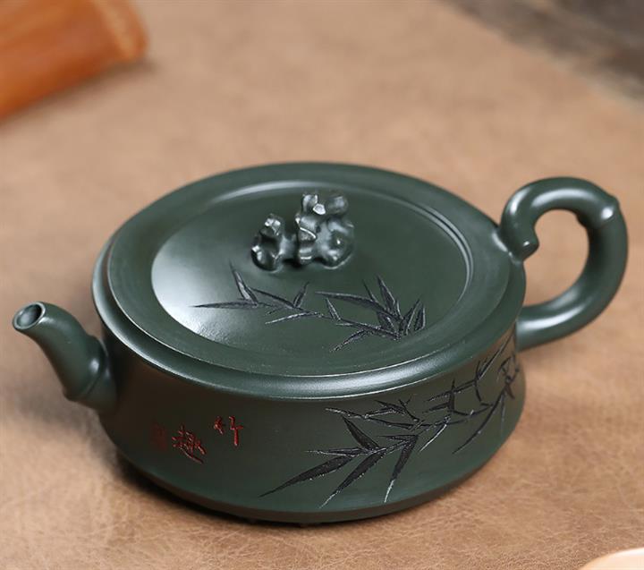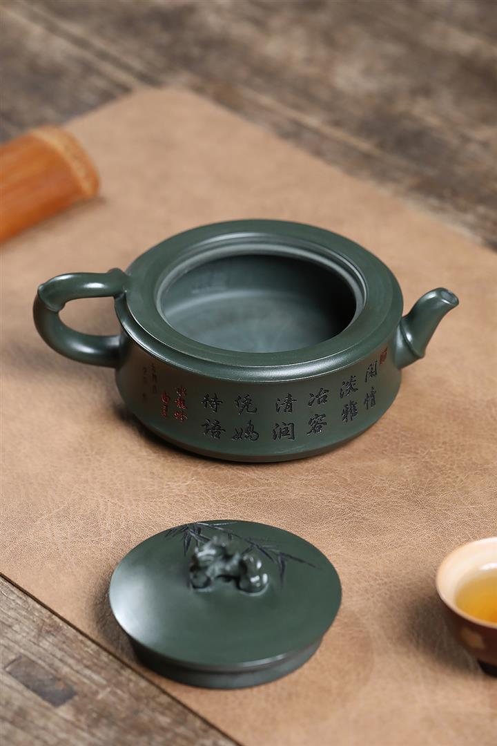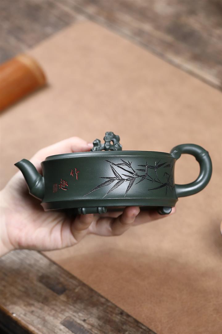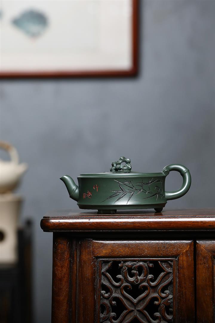 原礦綠泥刻繪太湖石竹趣茶壺POT7196