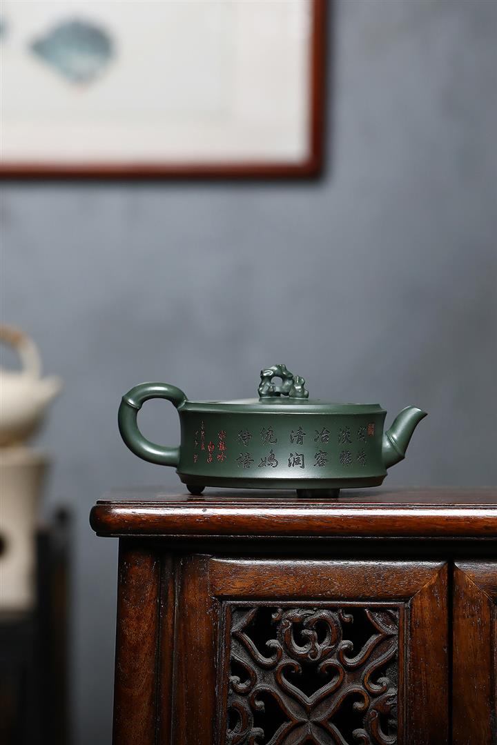 原礦綠泥刻繪如意潘壺茶壺POT7197