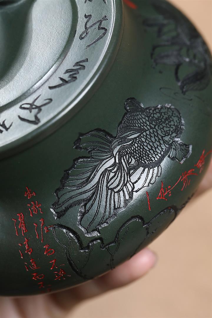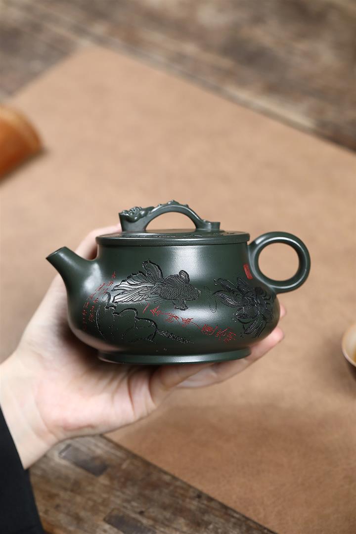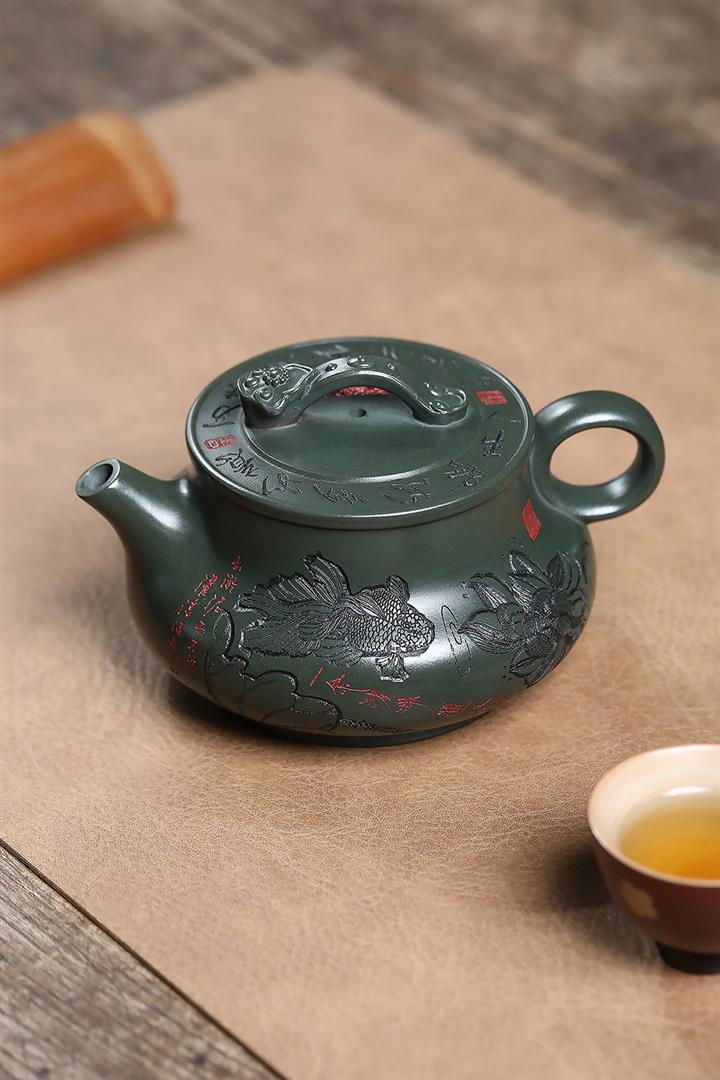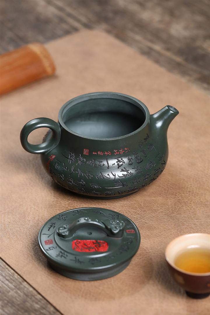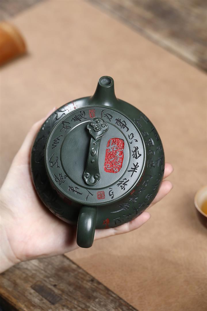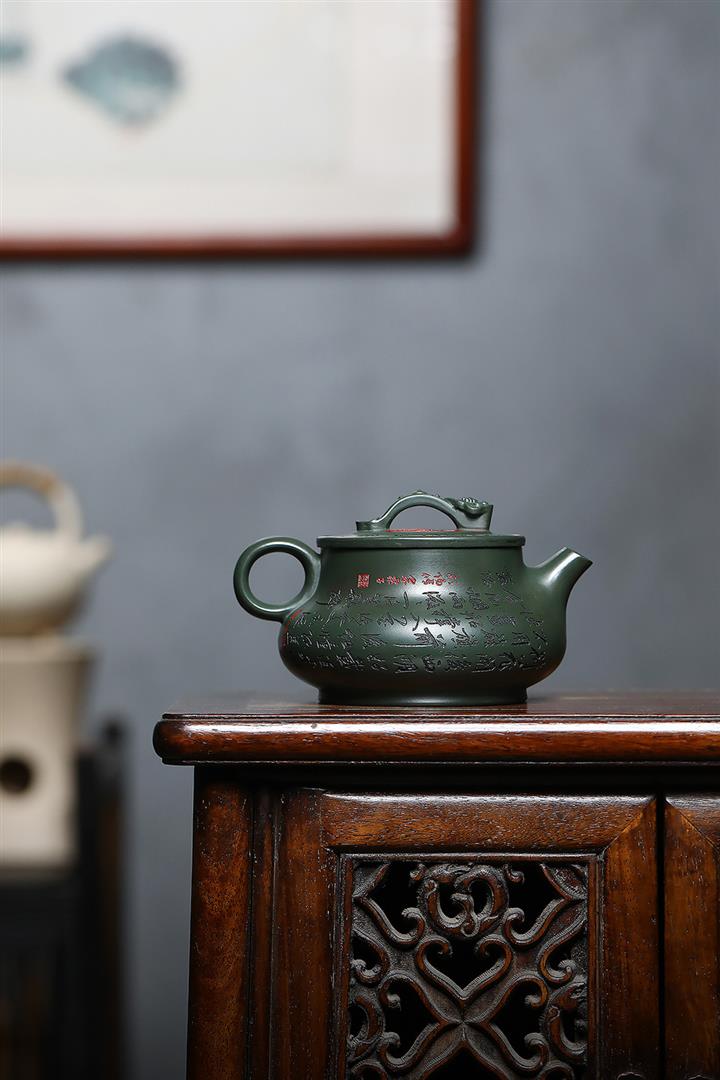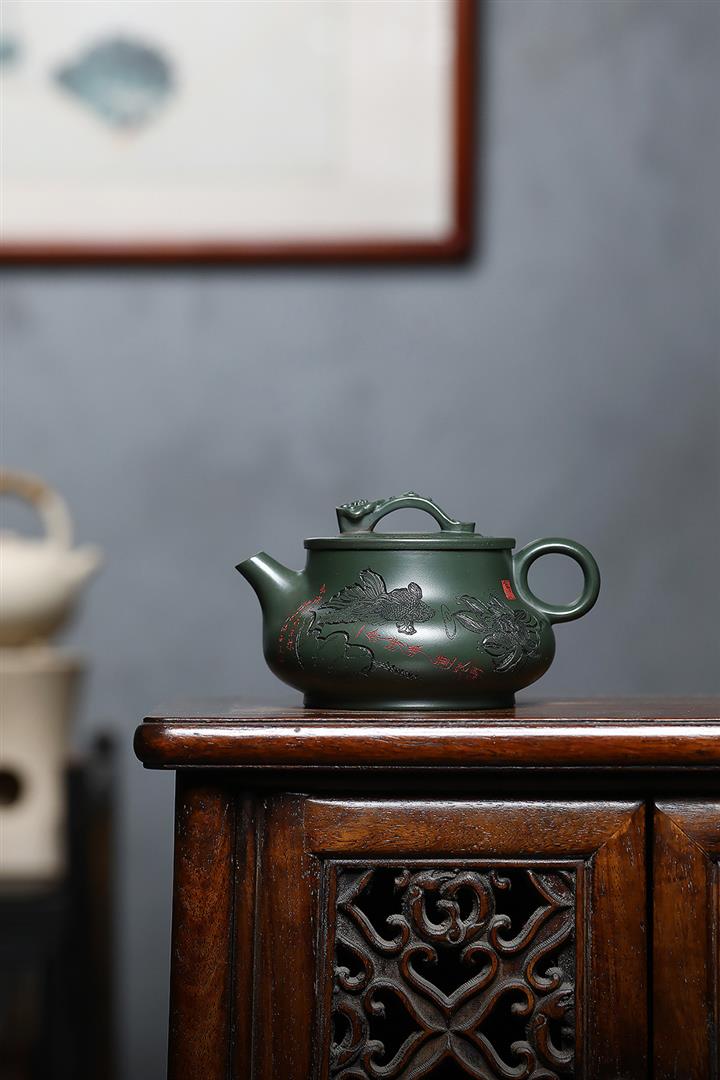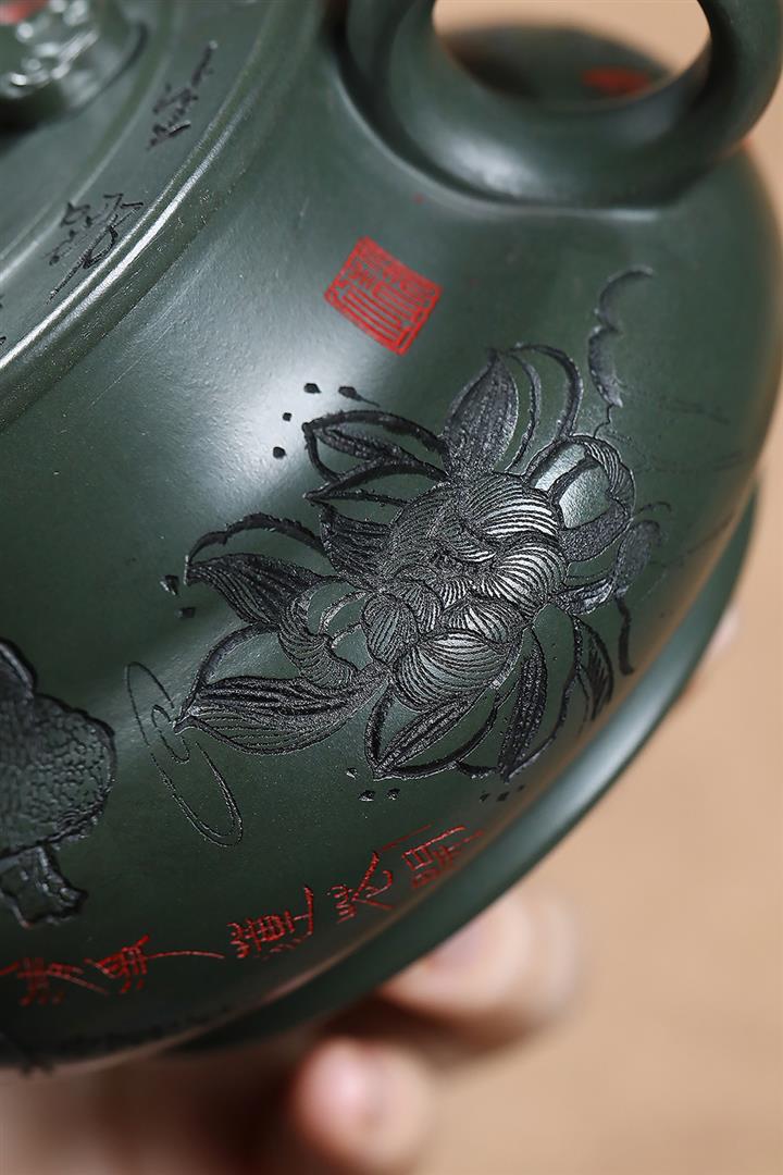 原礦綠泥刻繪如意潘壺茶壺POT7197