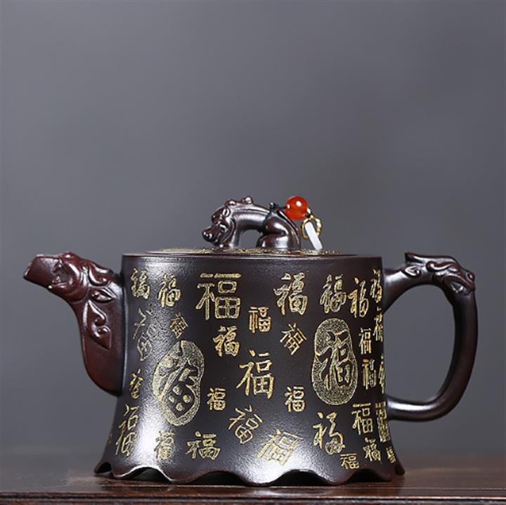 原礦古紅泥描金百福金鐘茶壺POT7212