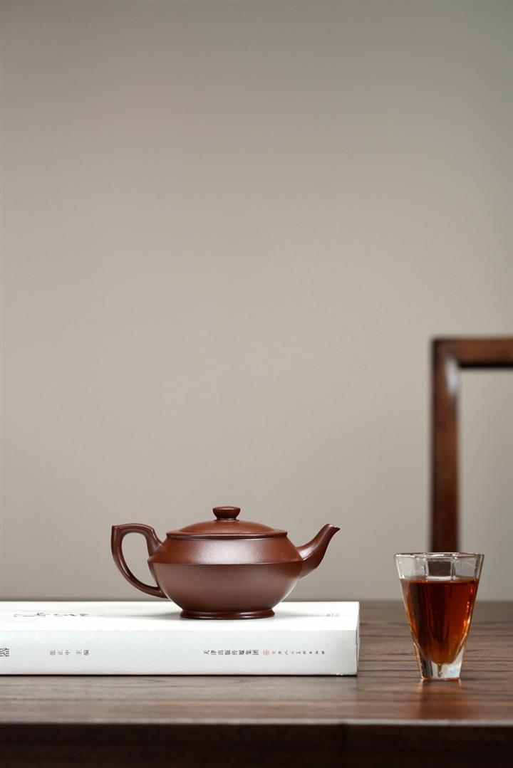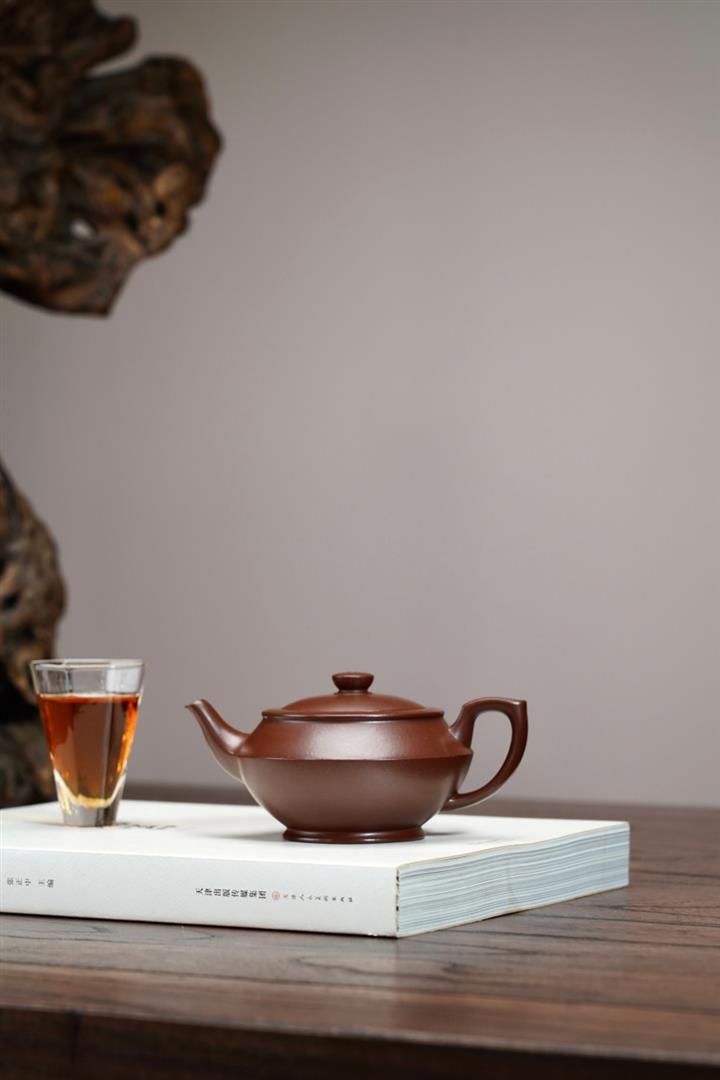 五嶽起方寸,壹把漢雲天下醉!整壺充分體現出線條的美感,簡練而挺拔,肩線延伸至壺流,與壺把保持平衡,曲折中有變化,柔美中有韌勁!細節做工精致,壹絲不茍,原礦老紫泥,手感佳,三泡茶泡養見泥料變化,質感溫潤如玉,力作!