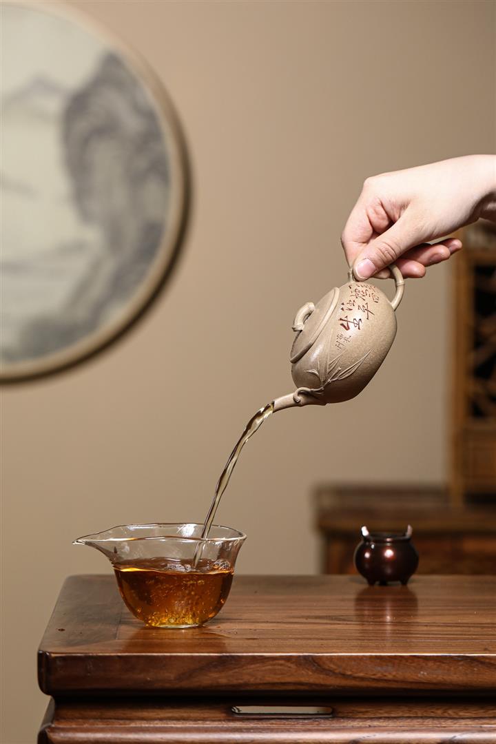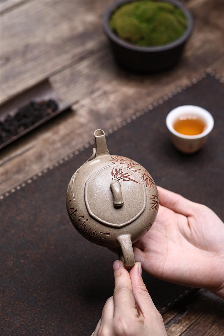 【泥料特點】砂土氣重,似淳實農民,日久使用,漸露鋒芒,養成變化,溫潤莊重。紫砂是壹種雙重氣孔結構的多孔性材質,氣孔微細,密度高。用紫砂壺沏茶,不失原味,且香不渙散,得茶之真香真味。