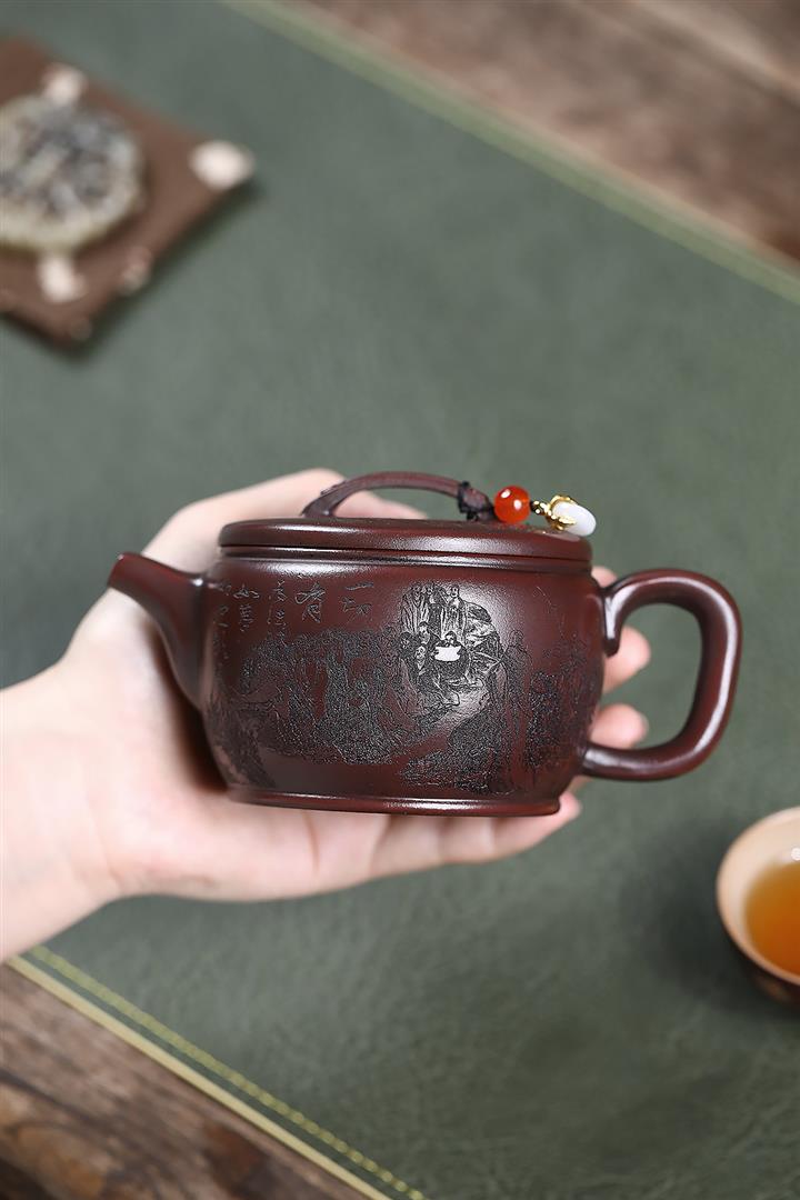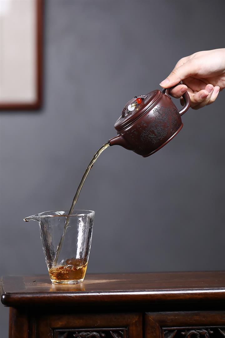 紫砂使用越久,壺身色澤越發光亮照人,氣韻溫雅。紫砂壺長久使用器身會因撫摸擦拭,變得越發溫潤光澤!