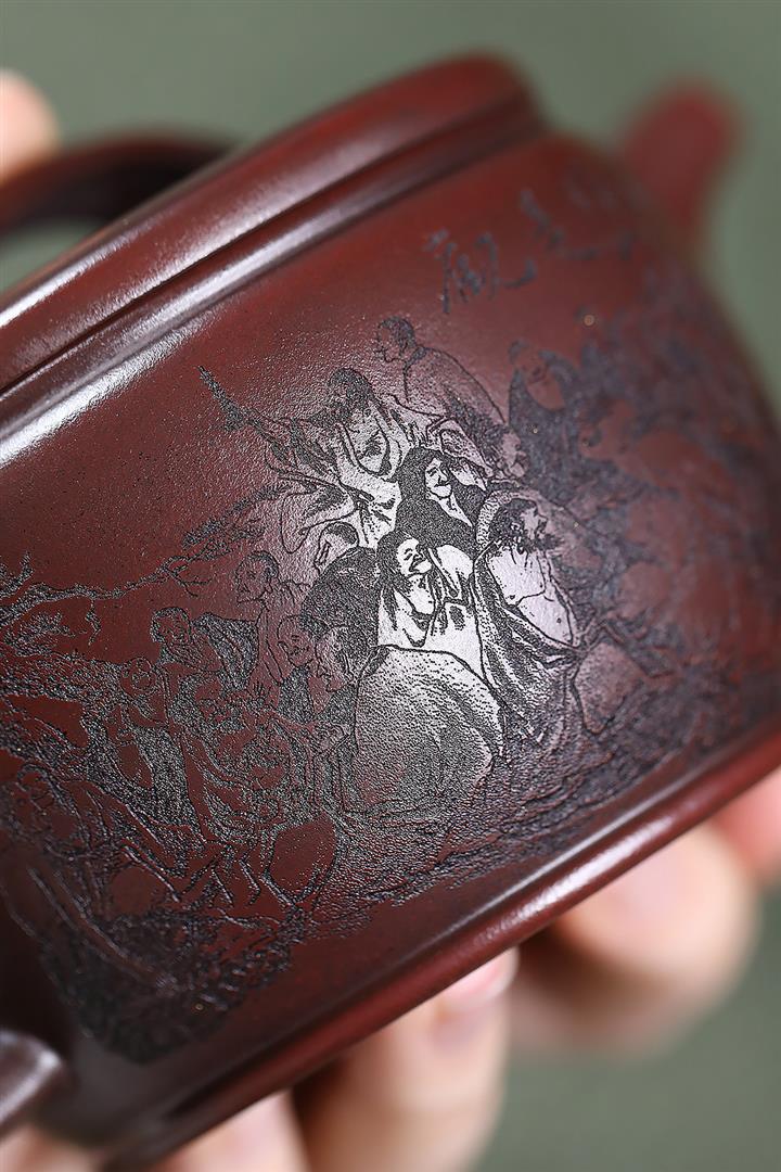 【作品介紹】作品深蘊內涵,做工細致典雅,型用完備,器形端莊穩重,比例協調,結構嚴謹,泥色潤澤。