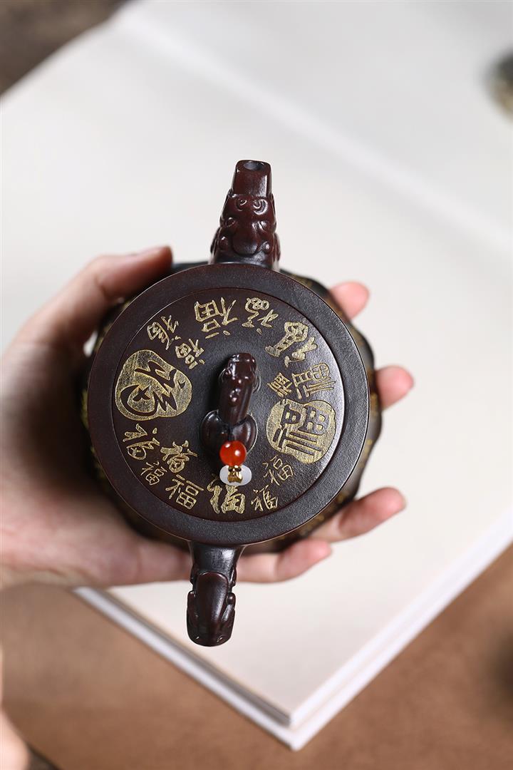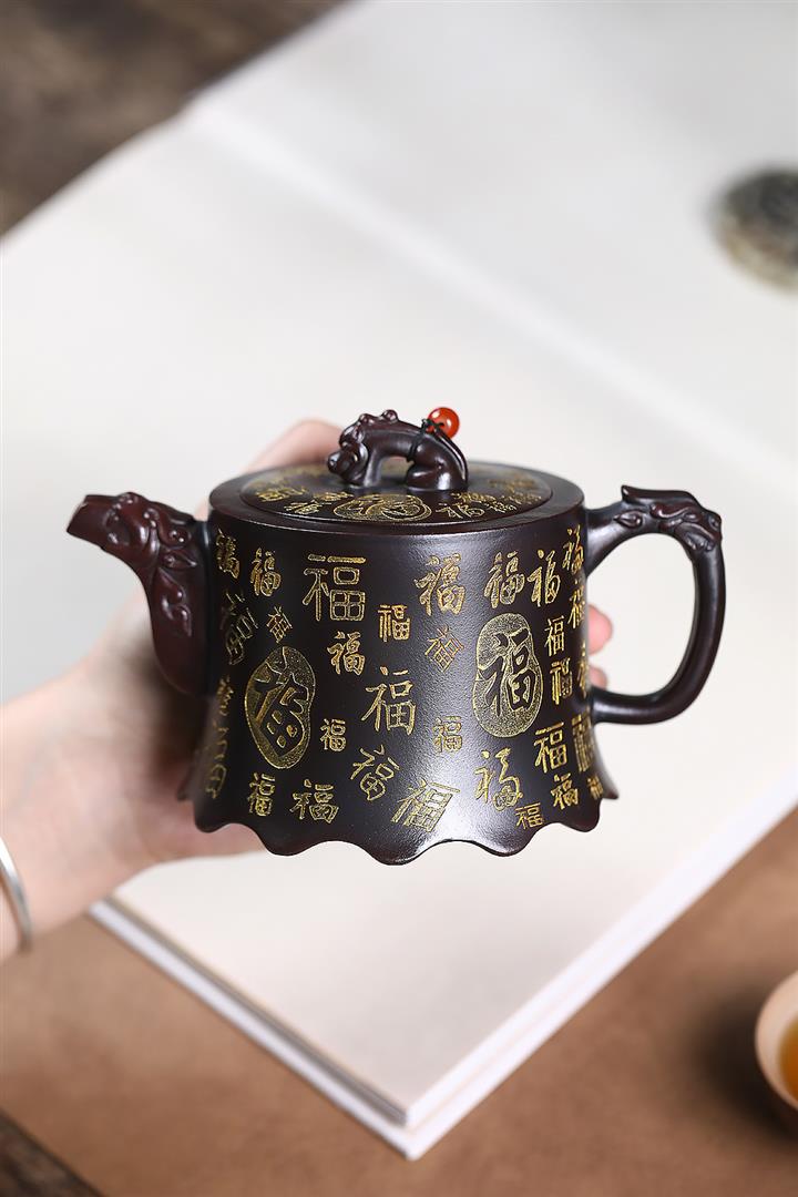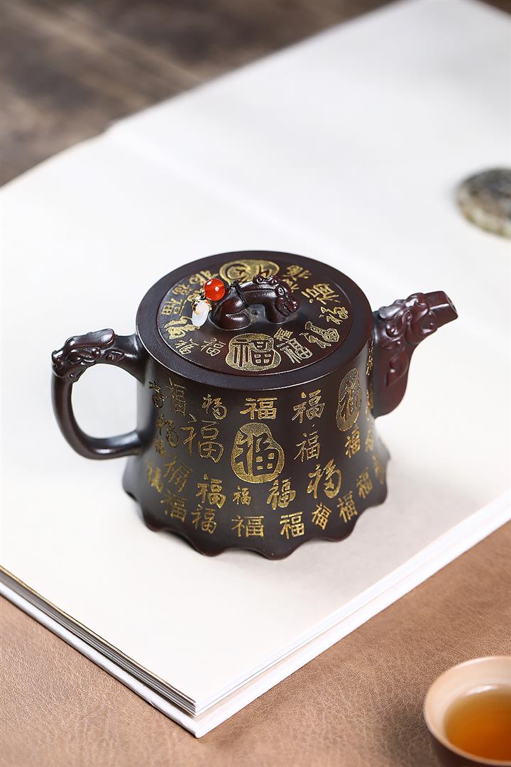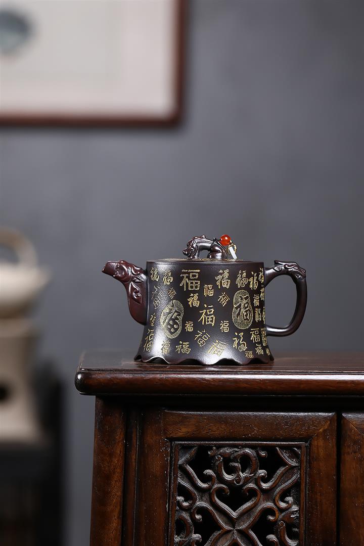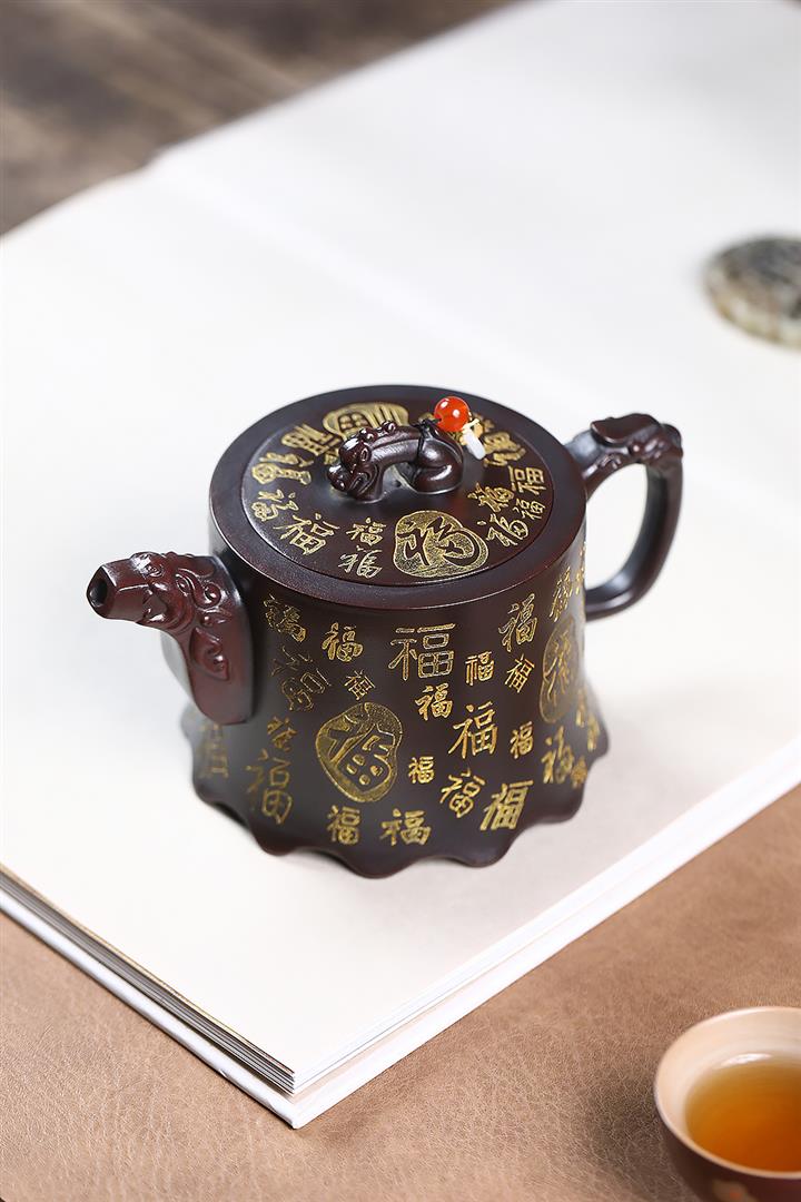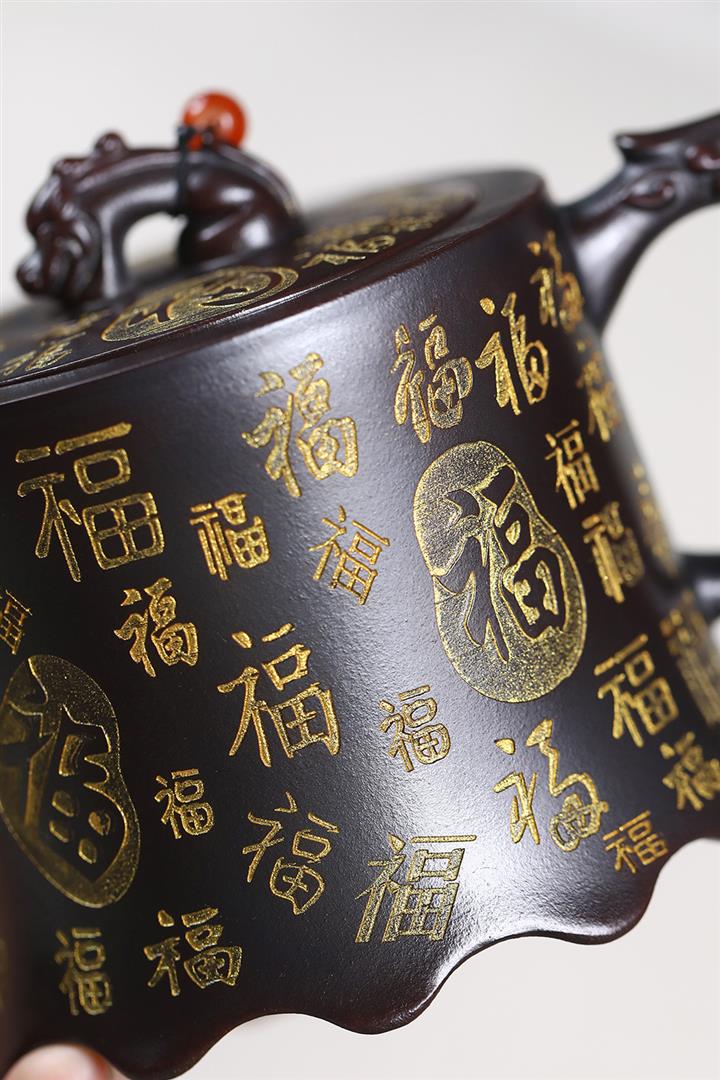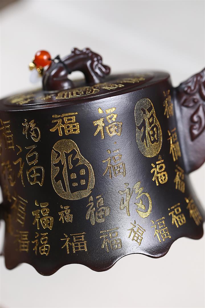 原礦古紅泥描金百福金鐘茶壺POT7212