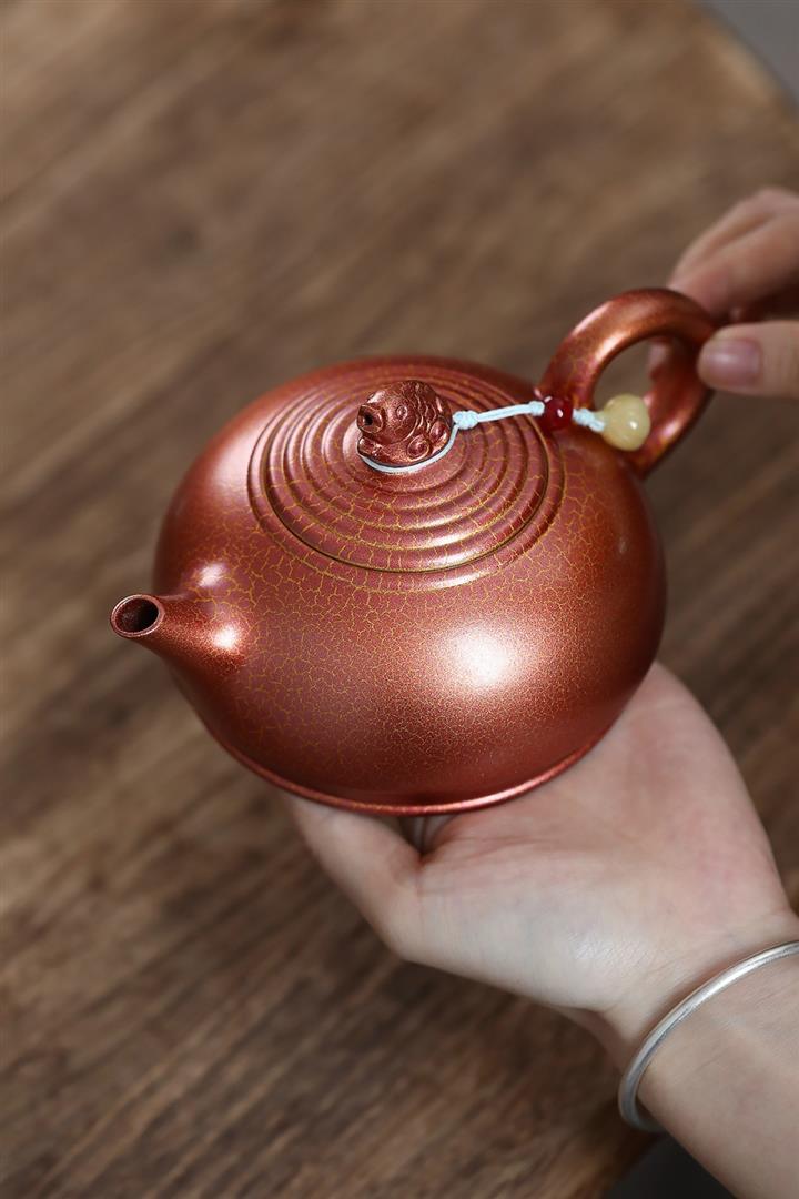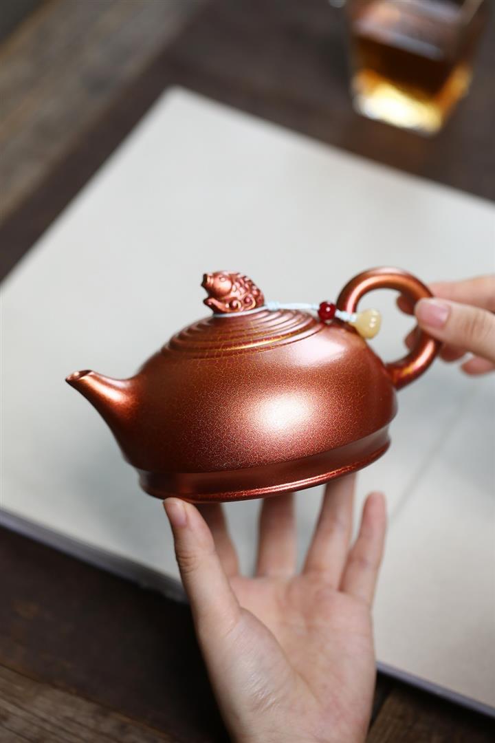 紫砂使用越久,壺身色澤越發光亮照人,氣韻溫雅。紫砂壺長久使用器身會因撫摸擦拭,變得越發溫潤光澤!