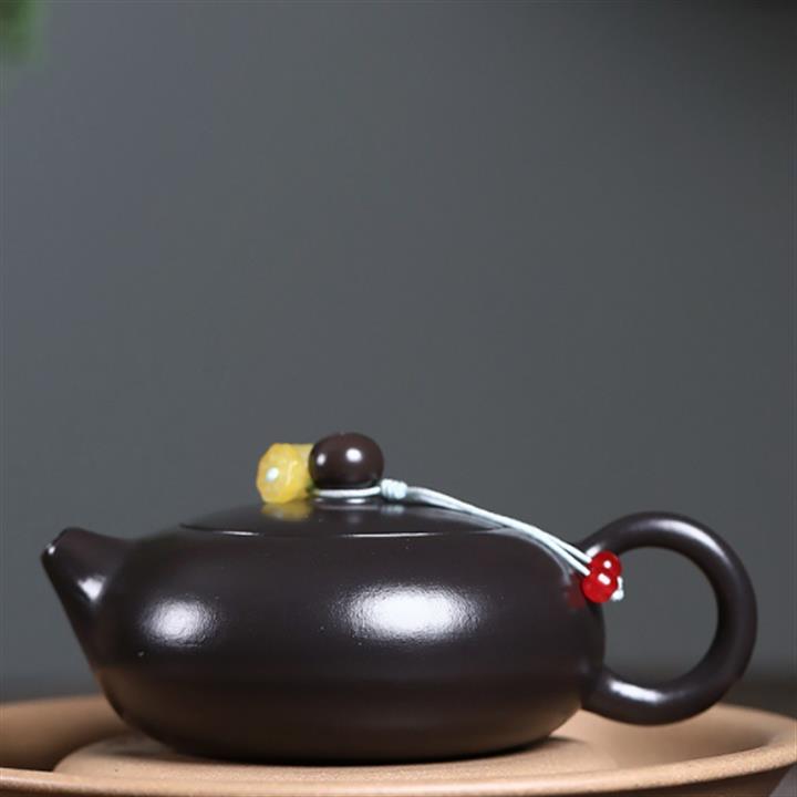 原礦黑朱泥焐灰扁西施茶壺POT7221