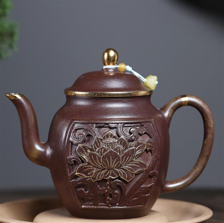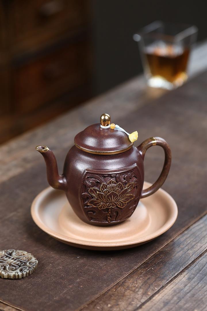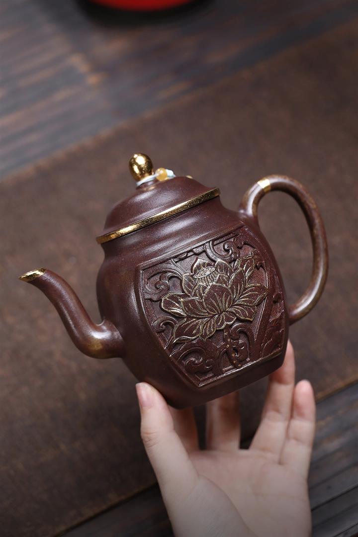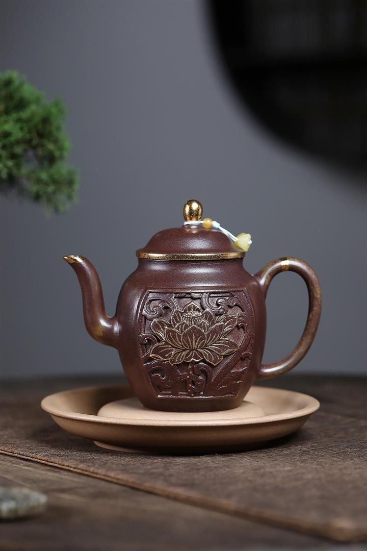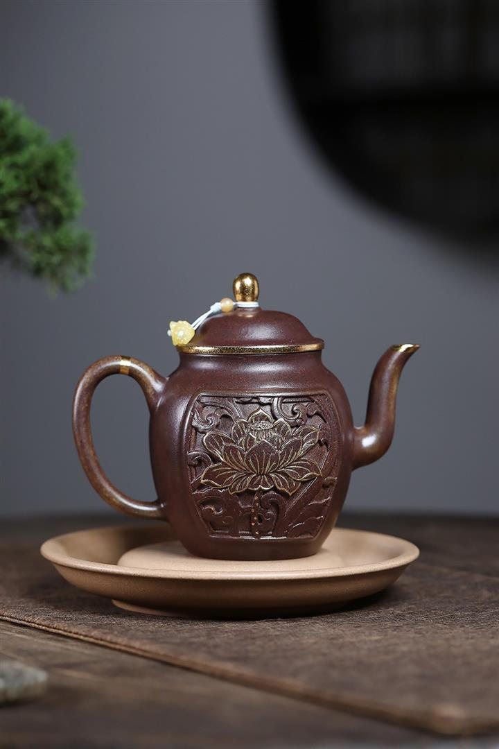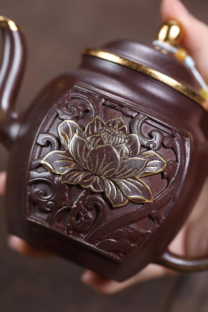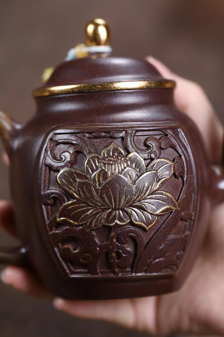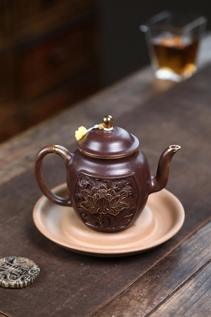 原礦沈香泥描金浮雕宮燈茶壺POT7217