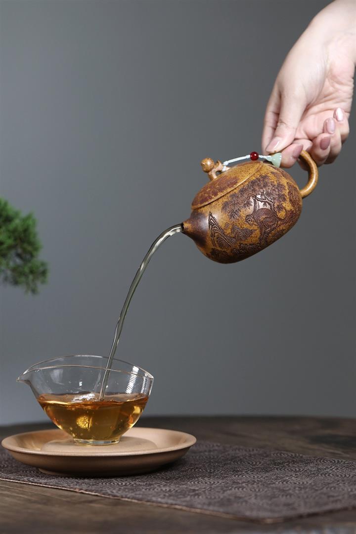 紫砂使用越久,壺身色澤越發光亮照人,氣韻溫雅。紫砂壺長久使用器身會因撫摸擦拭,變得越發溫潤光澤!