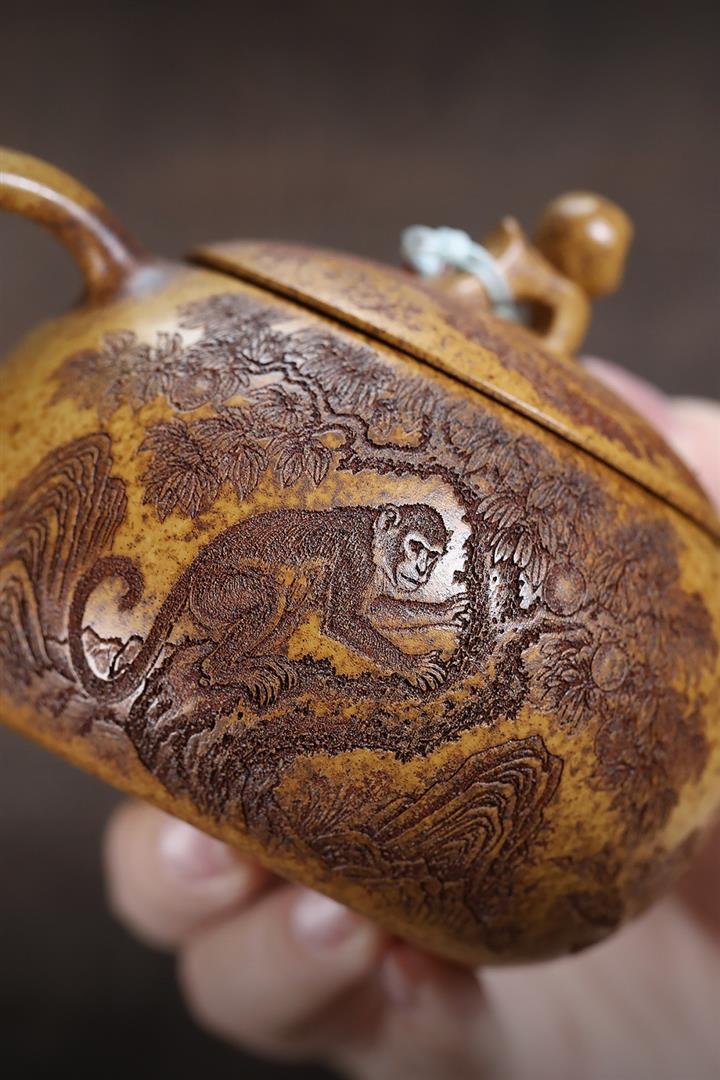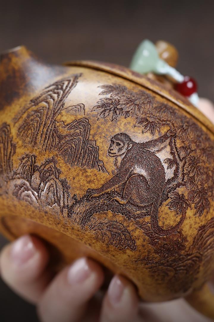 【品名】靈猴西施(附:壺繩 高檔禮盒 作者收藏證書 )