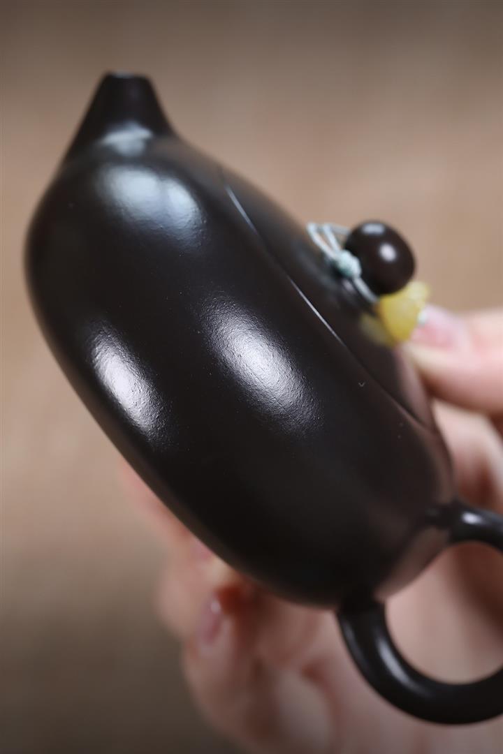 原礦黑朱泥焐灰扁西施茶壺POT7221
