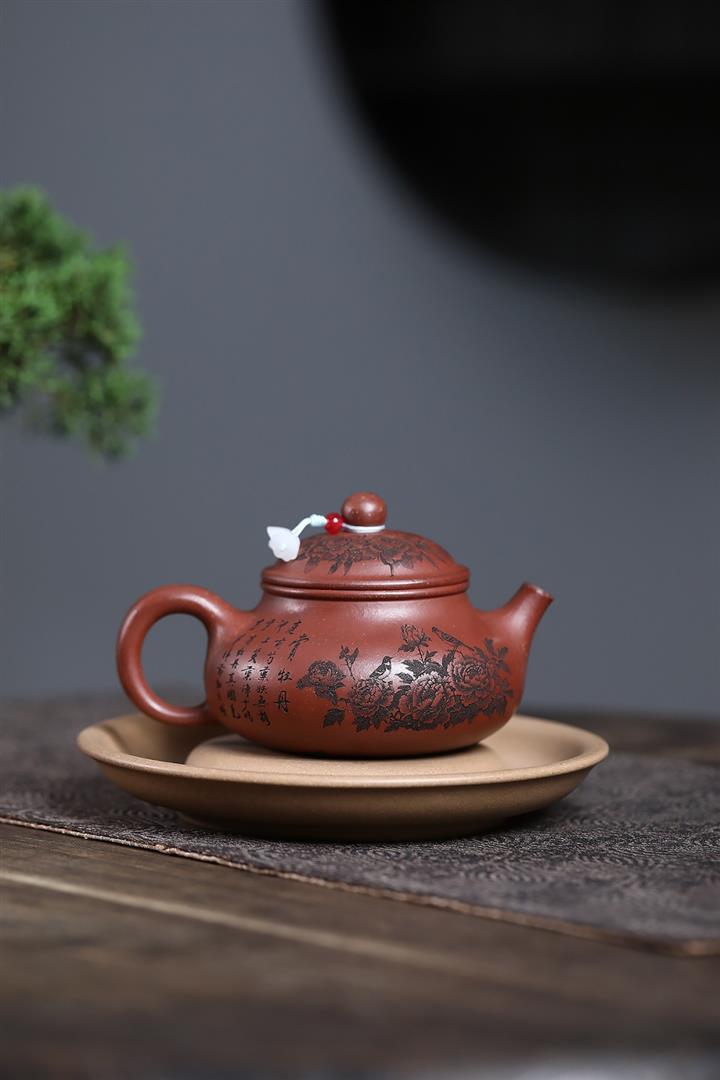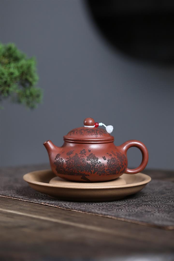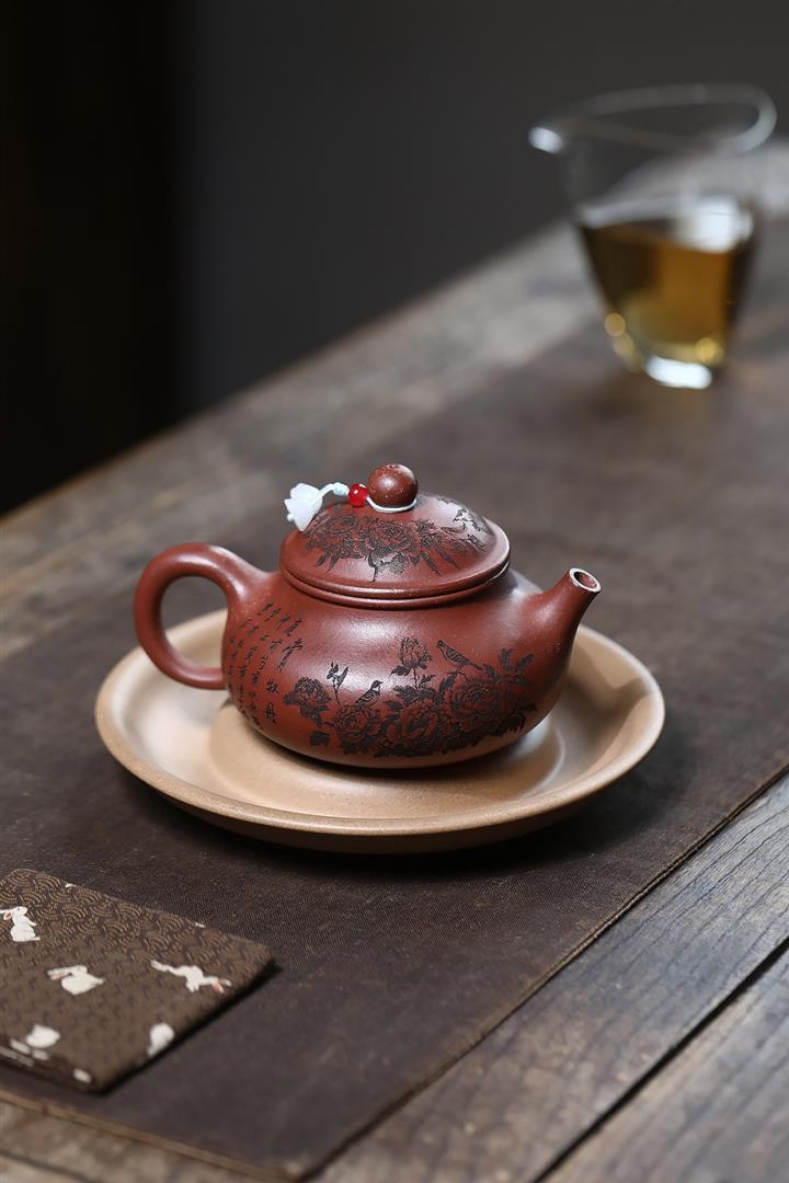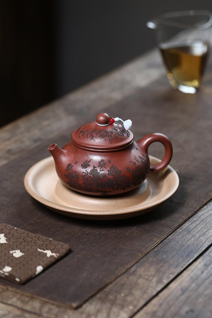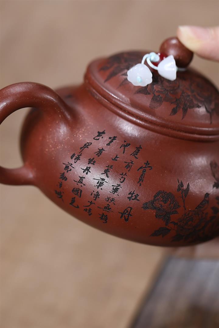 原礦家藏降坡泥滿刻牡丹容天茶壺POT7241