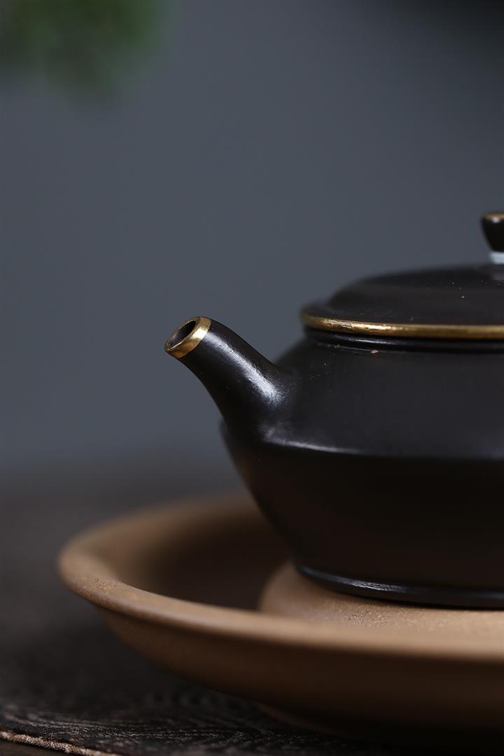原礦小煤窯朱泥描金焐灰曼殊壺POT7244