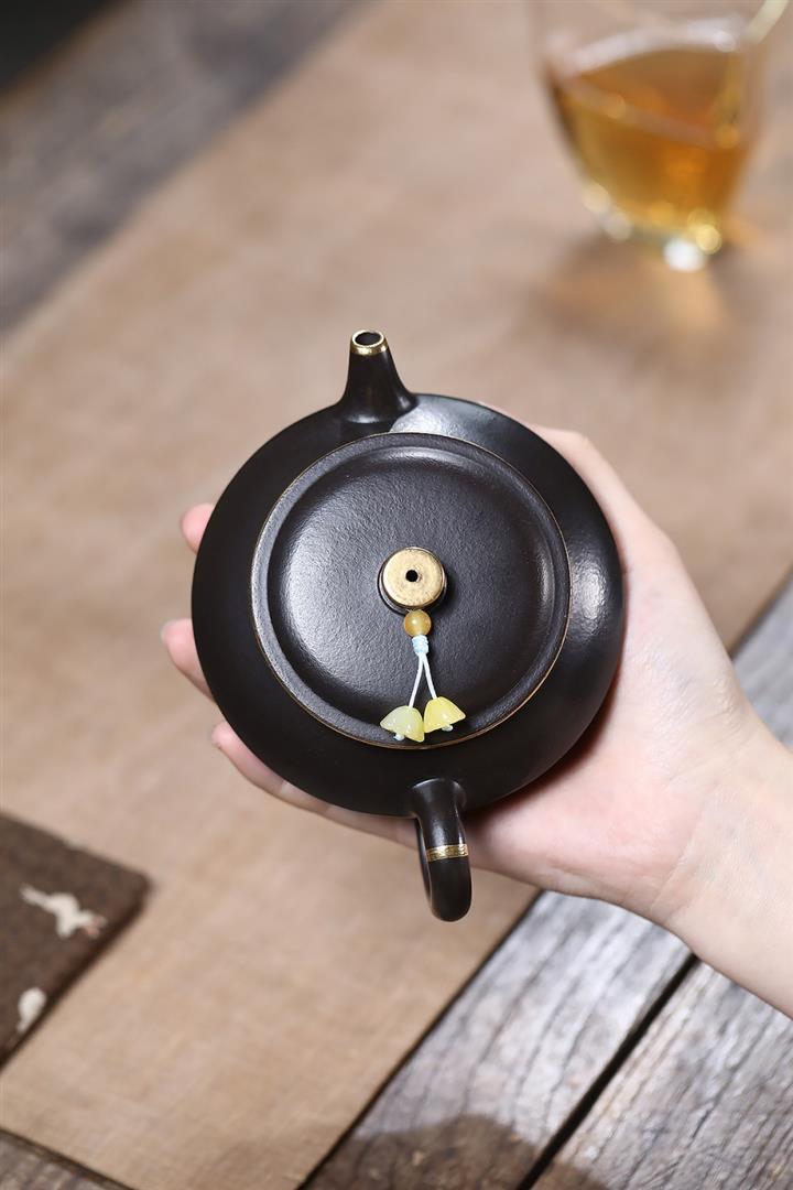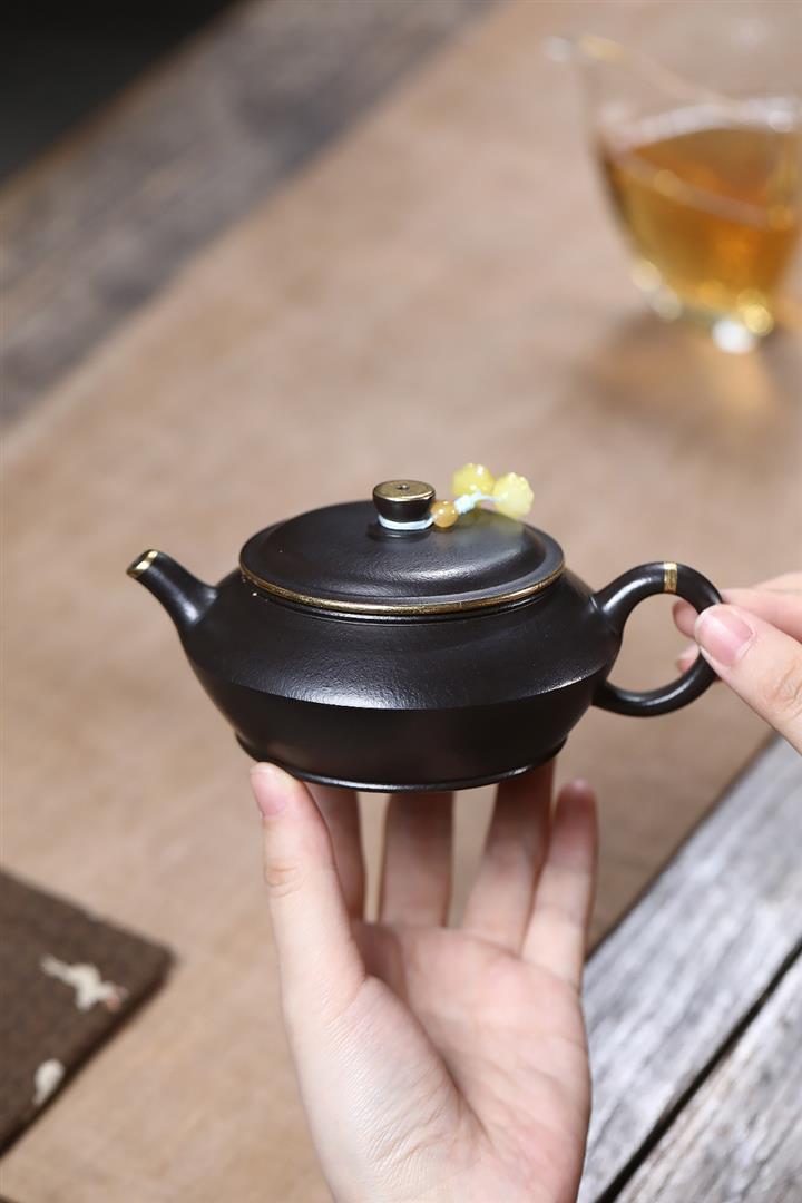 原礦小煤窯朱泥描金焐灰漢鐸壺POT7247
