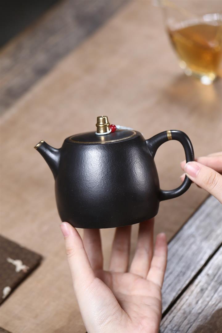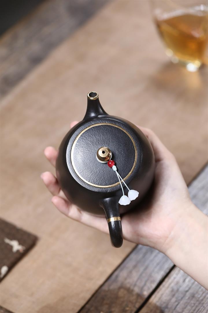 原礦小煤窯朱泥描金焐灰漢鐸壺POT7247