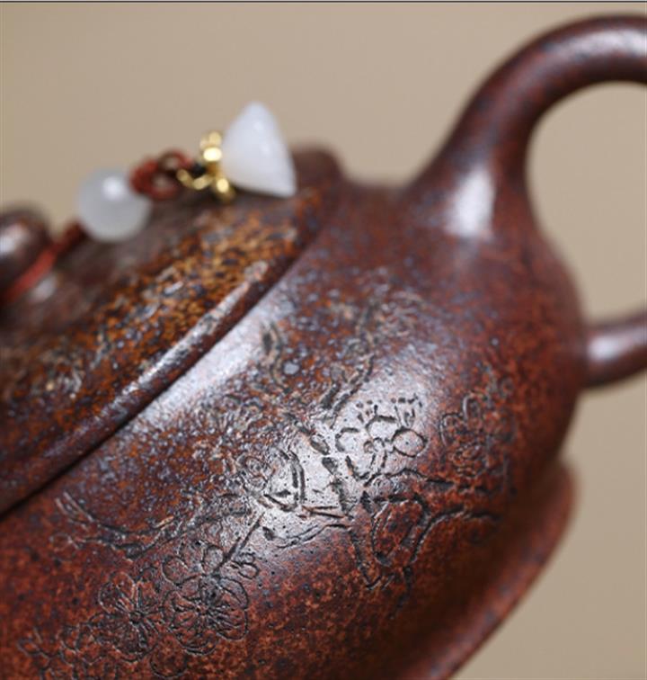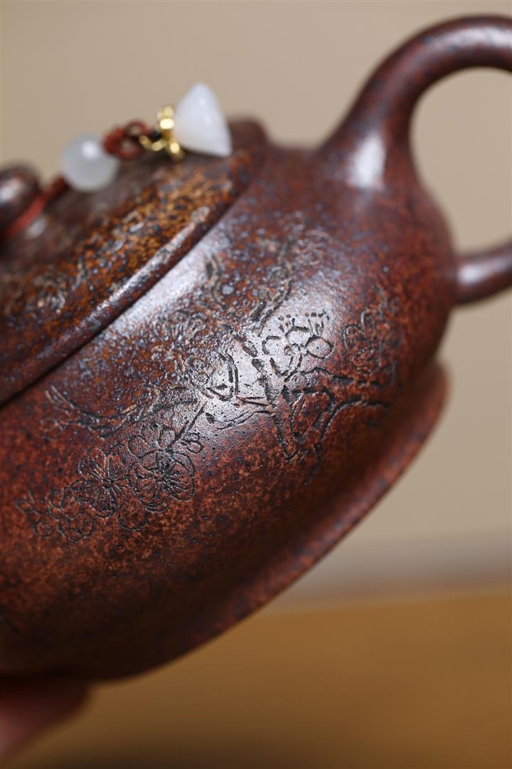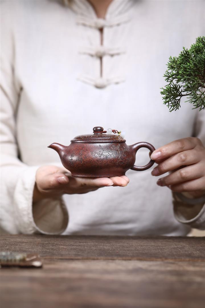 紫砂使用越久,壺身色澤越發光亮照人,氣韻溫雅。紫砂壺長久使用器身會因撫摸擦拭,變得越發溫潤光澤!