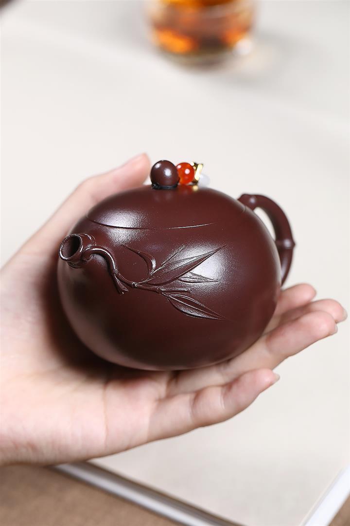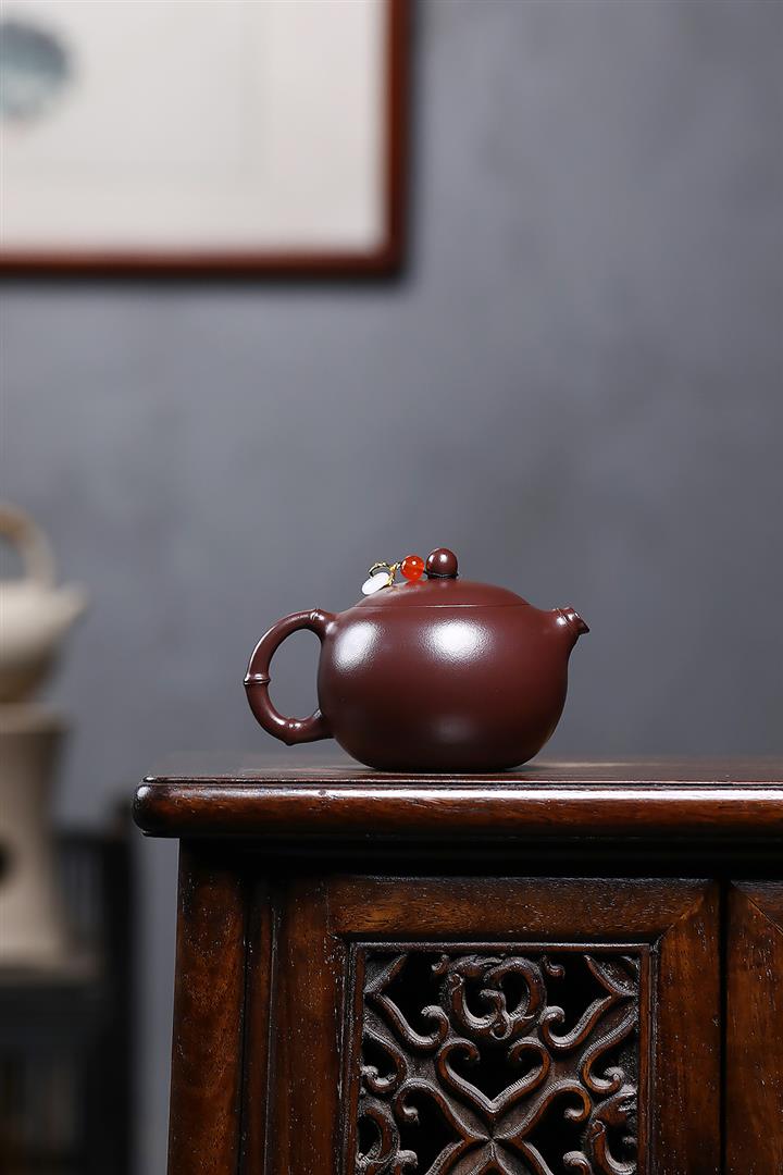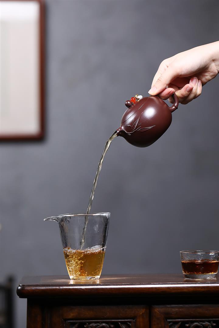 紫砂使用越久,壺身色澤越發光亮照人,氣韻溫雅。紫砂壺長久使用器身會因撫摸擦拭,變得越發溫潤光澤!