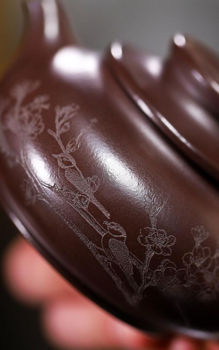 紫砂使用越久,壺身色澤越發光亮照人,氣韻溫雅。紫砂壺長久使用器身會因撫摸擦拭,變得越發溫潤光澤!