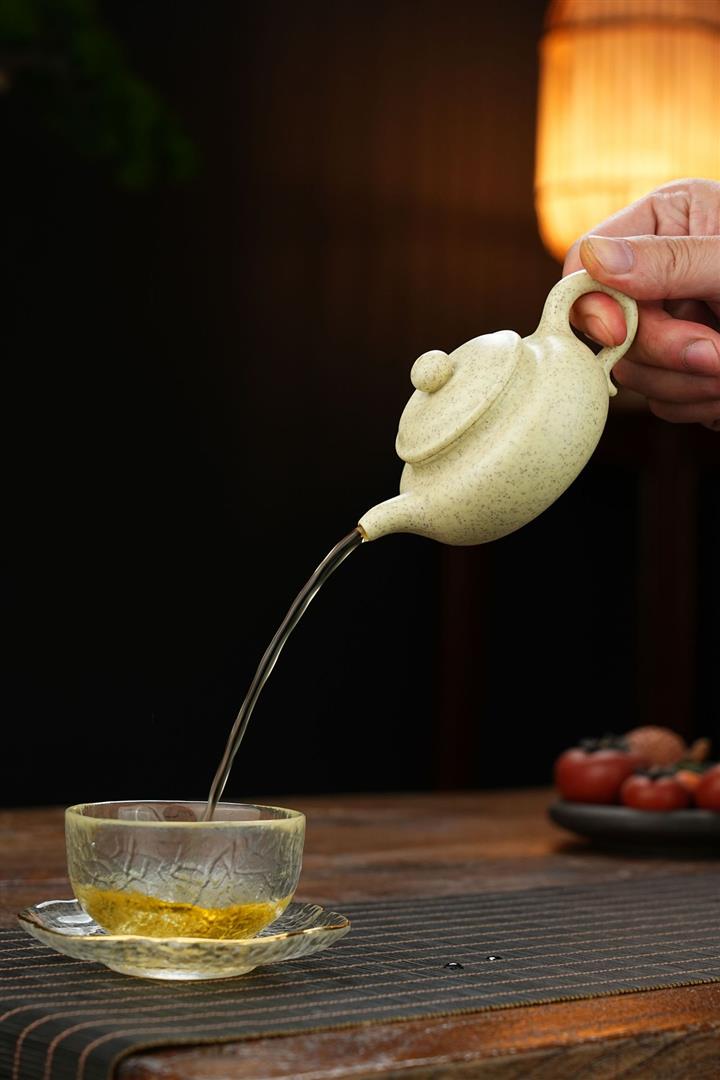 【泥料特點】砂土氣重,似淳實農民,日久使用,漸露鋒芒,養成變化,溫潤莊重。紫砂是壹種雙重氣孔結構的多孔性材質,氣孔微細,密度高。用紫砂壺沏茶,不失原味,且香不渙散,得茶之真香真味。紫砂使用越久,壺身色澤越發光亮照人,氣韻溫雅。紫砂壺長久使用器身會因撫摸擦拭,變得越發溫潤光澤!