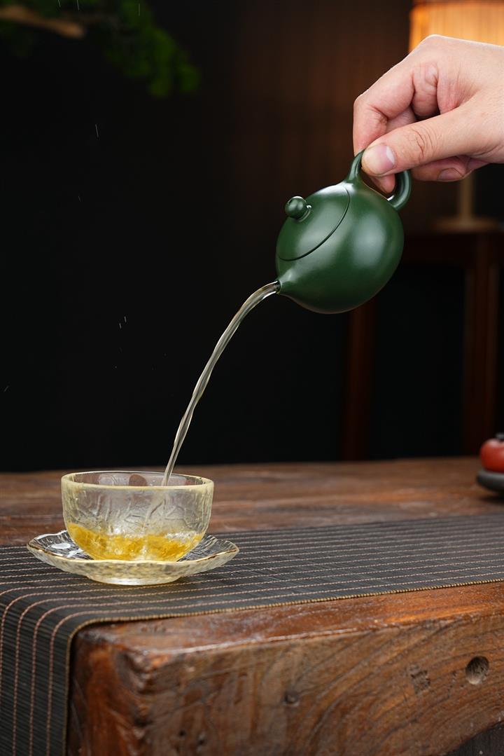 【泥料特點】砂土氣重,似淳實農民,日久使用,漸露鋒芒,養成變化,溫潤莊重。紫砂是壹種雙重氣孔結構的多孔性材質,氣孔微細,密度高。用紫砂壺沏茶,不失原味,且香不渙散,得茶之真香真味。紫砂使用越久,壺身色澤越發光亮照人,氣韻溫雅。紫砂壺長久使用器身會因撫摸擦拭,變得越發溫潤光澤!