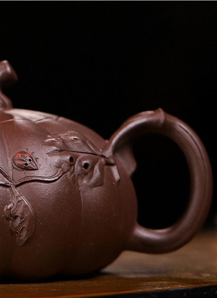 【泥料特點】砂土氣重,似淳實農民,日久使用,漸露鋒芒,養成變化甚大,溫潤莊重。線條優美自然,嘴把搭配協調,身桶配上細長的把搭配,更顯優生動…