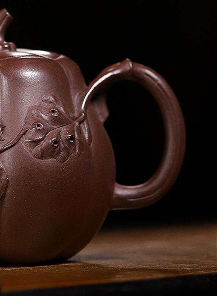 【泥料特點】砂土氣重,似淳實農民,日久使用,漸露鋒芒,養成變化甚大,溫潤莊重。線條優美自然,嘴把搭配協調,身桶配上細長的把搭配,更顯優生動…