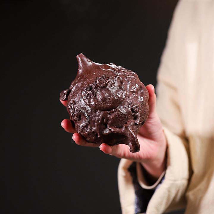 原礦紫砂泥八方獅球混方茶壺POT7296