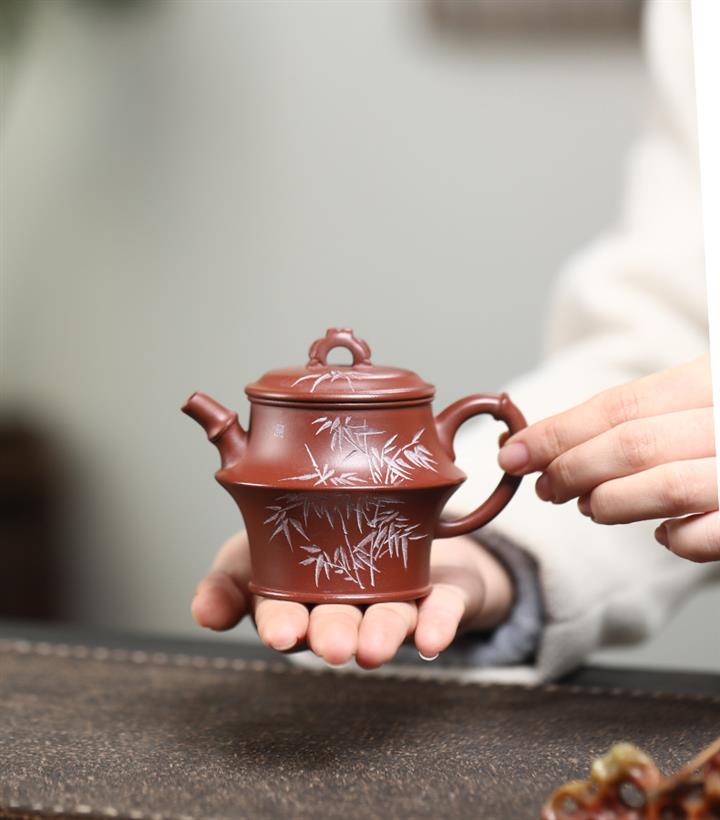 原礦紫泥竹韻聽風竹影茶壺POT7308