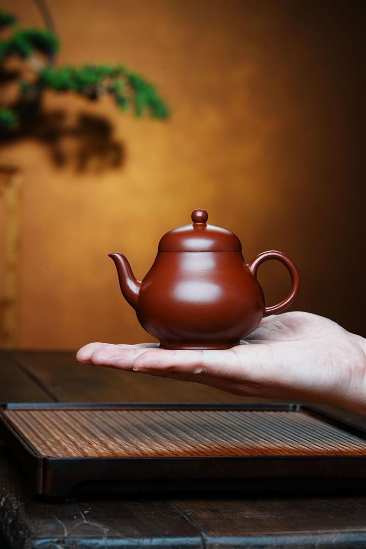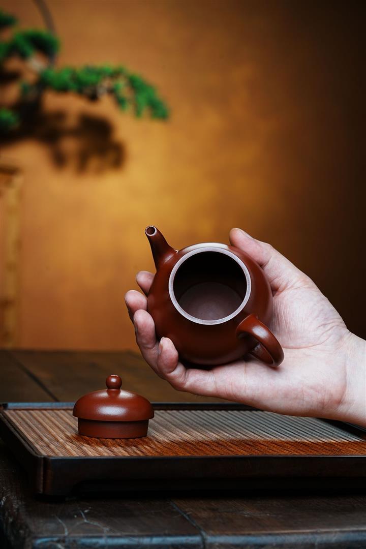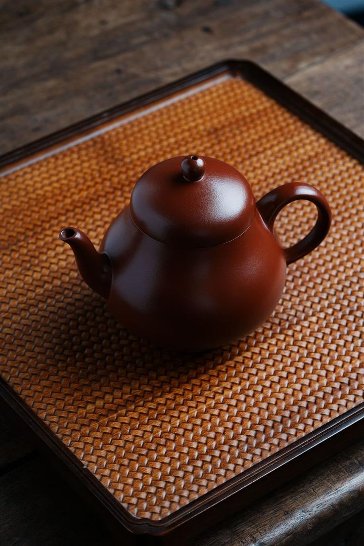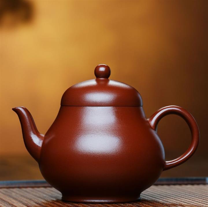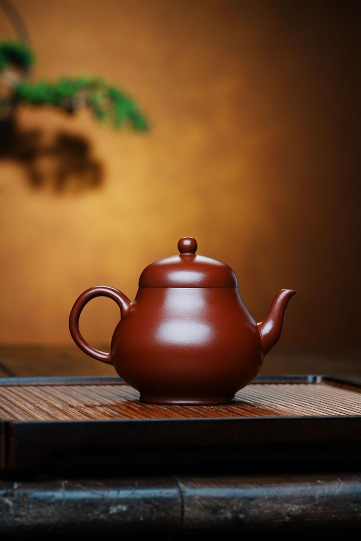 此壺為紫砂經典器型之壹,造型古樸,氣韻生動。壺體扁平碩大,渾厚華滋,線條流暢自然,直嘴前沖,曲線優美,壺把自由舒展,飄逸放達,壺口平滑,壺鈕呈圓球狀,小巧可愛,拿捏便利,整器做工精湛,泥料精致細膩,色澤更是靚麗典雅,令人喜愛。