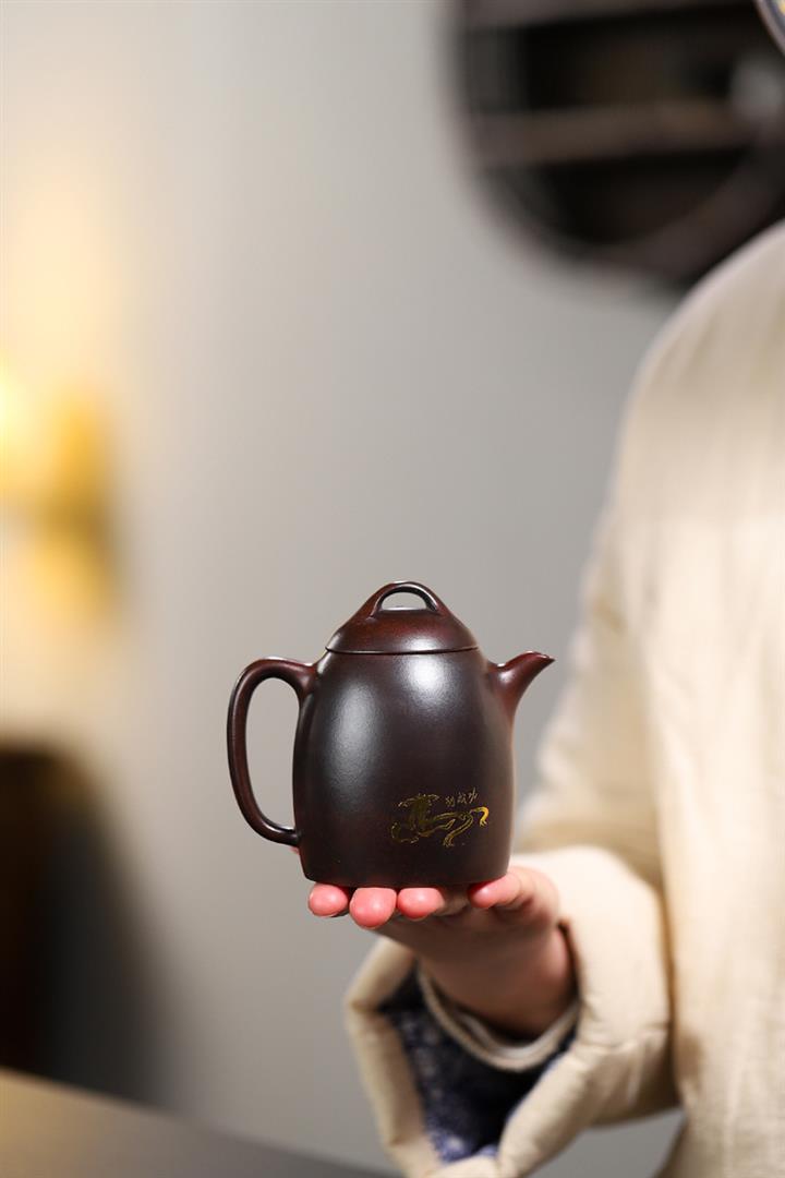 原礦紫泥堆繪蓮蓬秦權茶壺POT7369