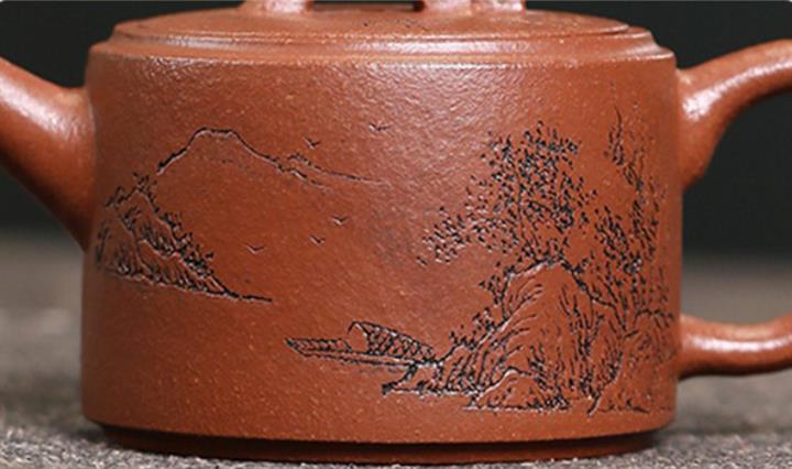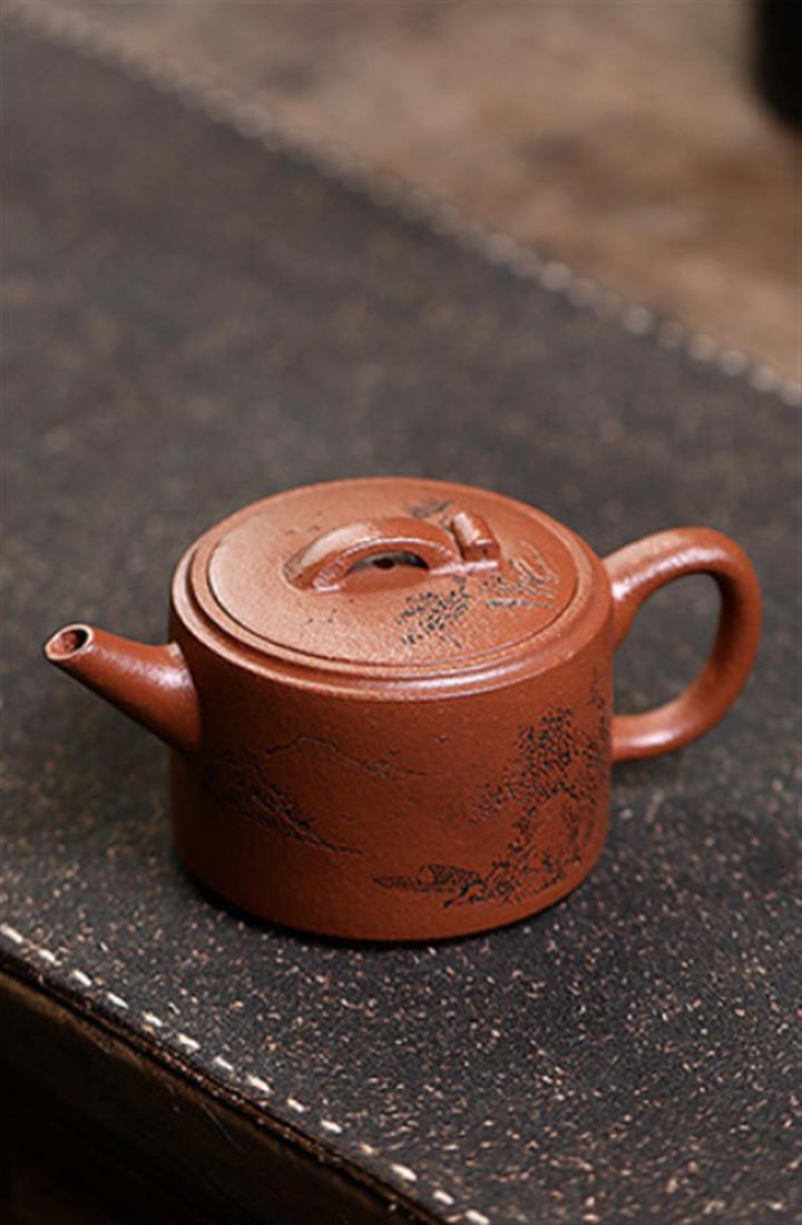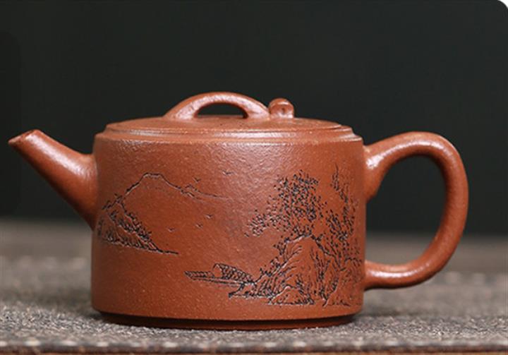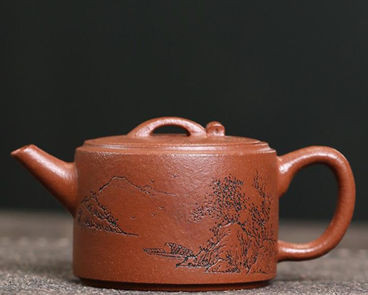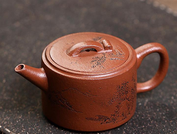 原礦大紅袍描金觀山水扁茶壺POT7366