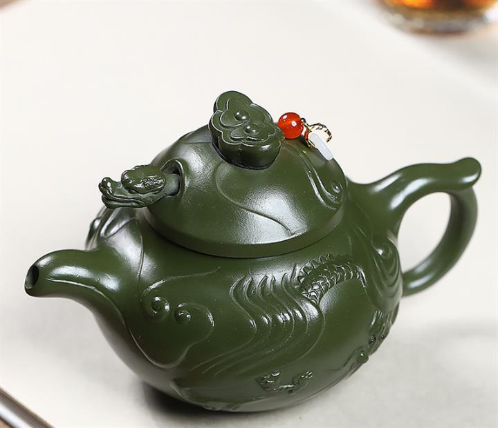 原礦翡翠綠泥魚化龍茶壺POT7368