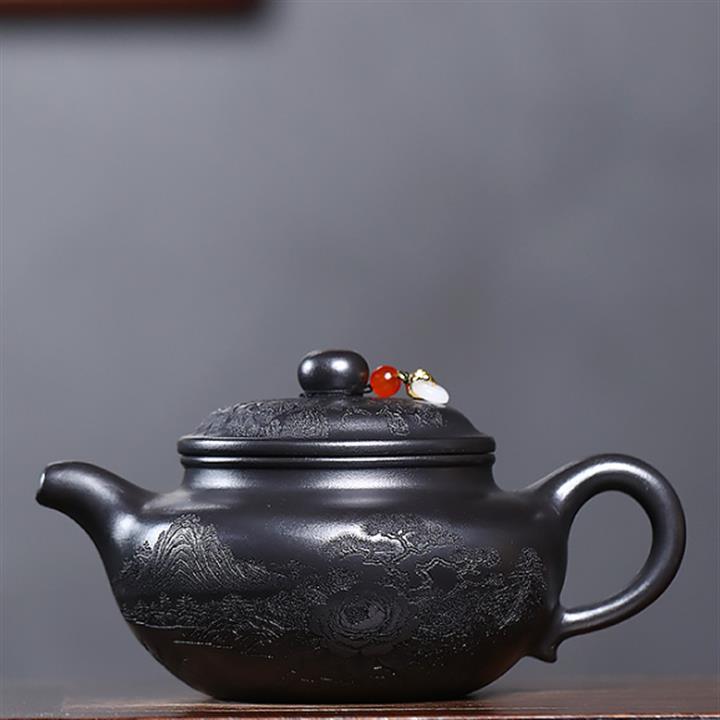 原礦玄鐵石黃山水仿古茶壺POT7370