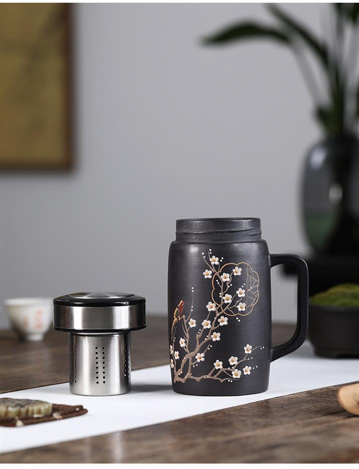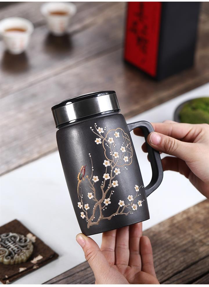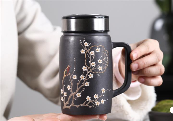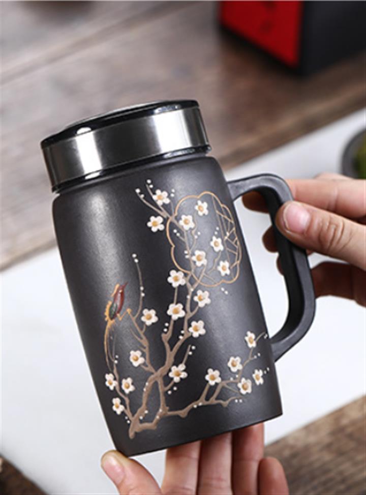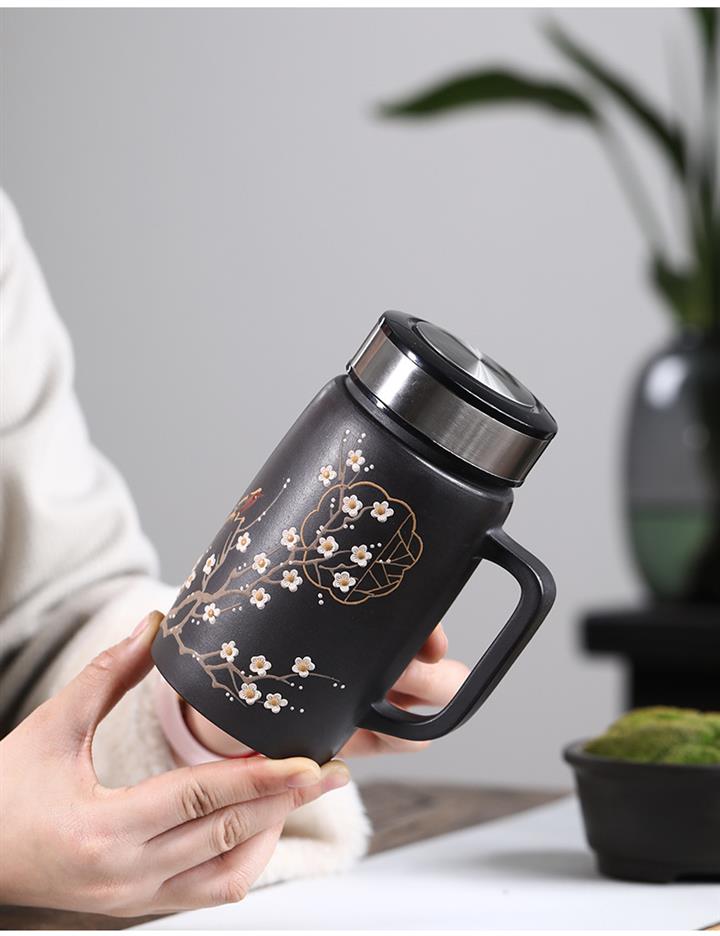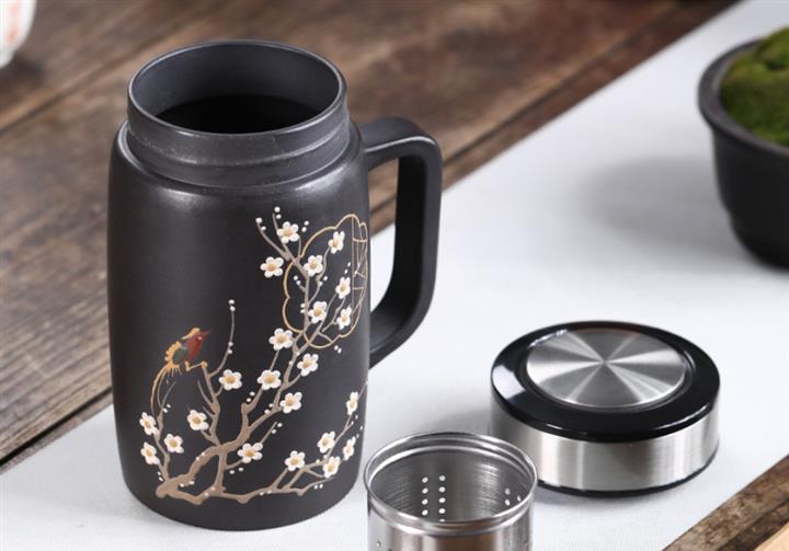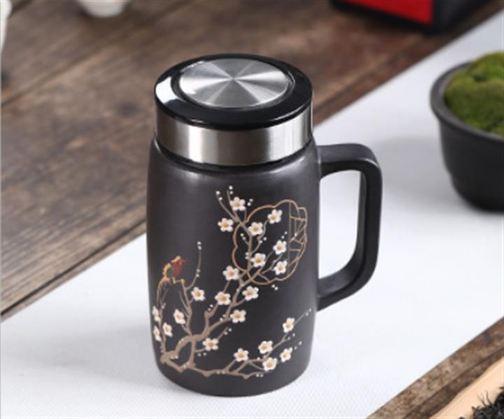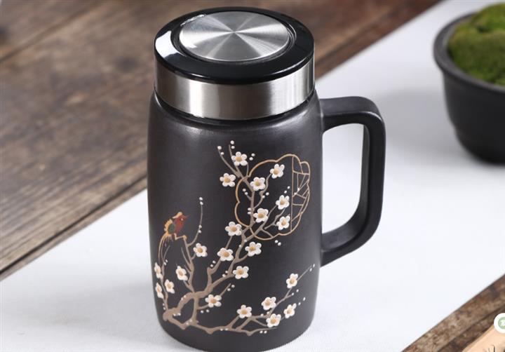 原礦紫砂泥梅花泥繪保溫杯POT7382