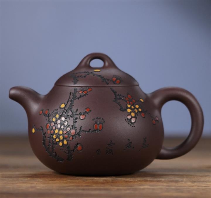 原礦紫泥梅花刻繪珠圓玉潤茶壺POT7397