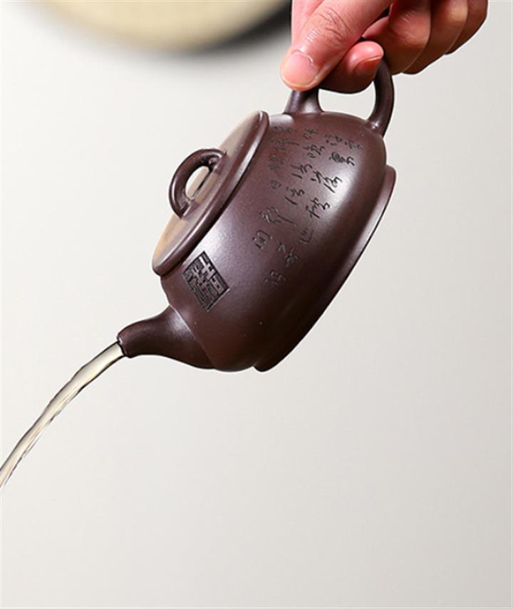 紫砂使用越久,壺身色澤越發光亮照人,氣韻溫雅。紫砂壺長久使用器身會因撫摸擦拭,變得越發溫潤光澤!