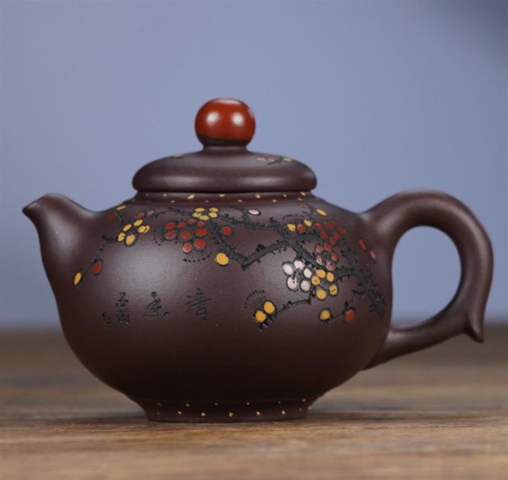 原礦紫泥梅花刻繪珠圓玉潤茶壺POT7397