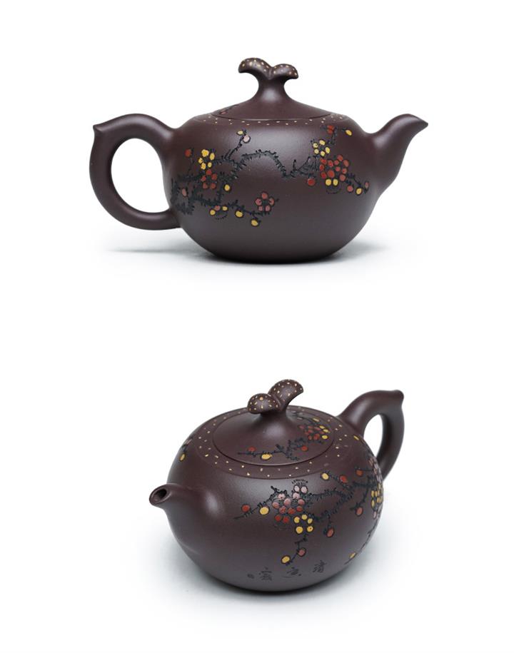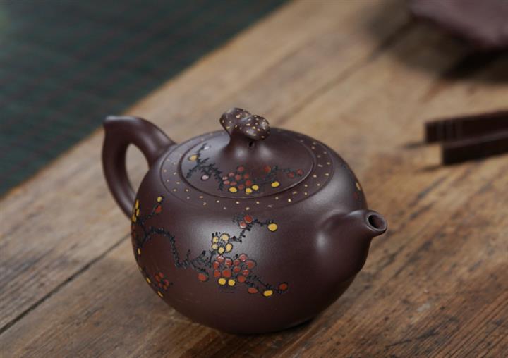 紫砂使用越久,壺身色澤越發光亮照人,氣韻溫雅。紫砂壺長久使用器身會因撫摸擦拭,變得越發溫潤光澤!